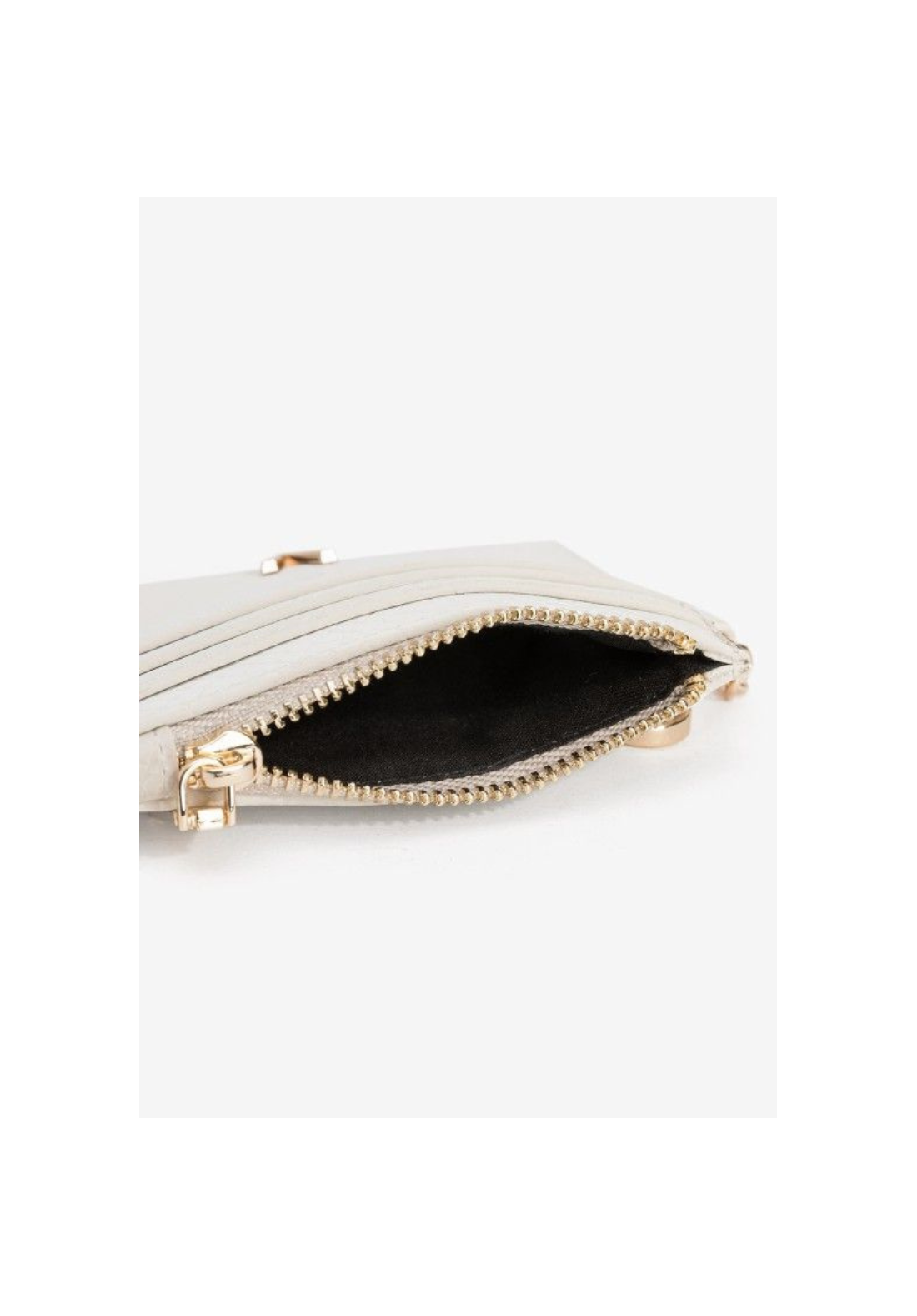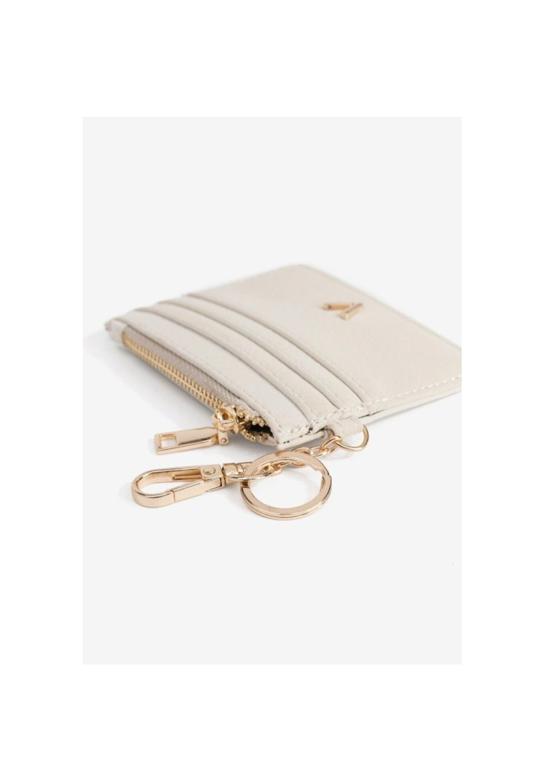 Porta monedas compacto con cierre de cremallera dorado y anilla para llaves.