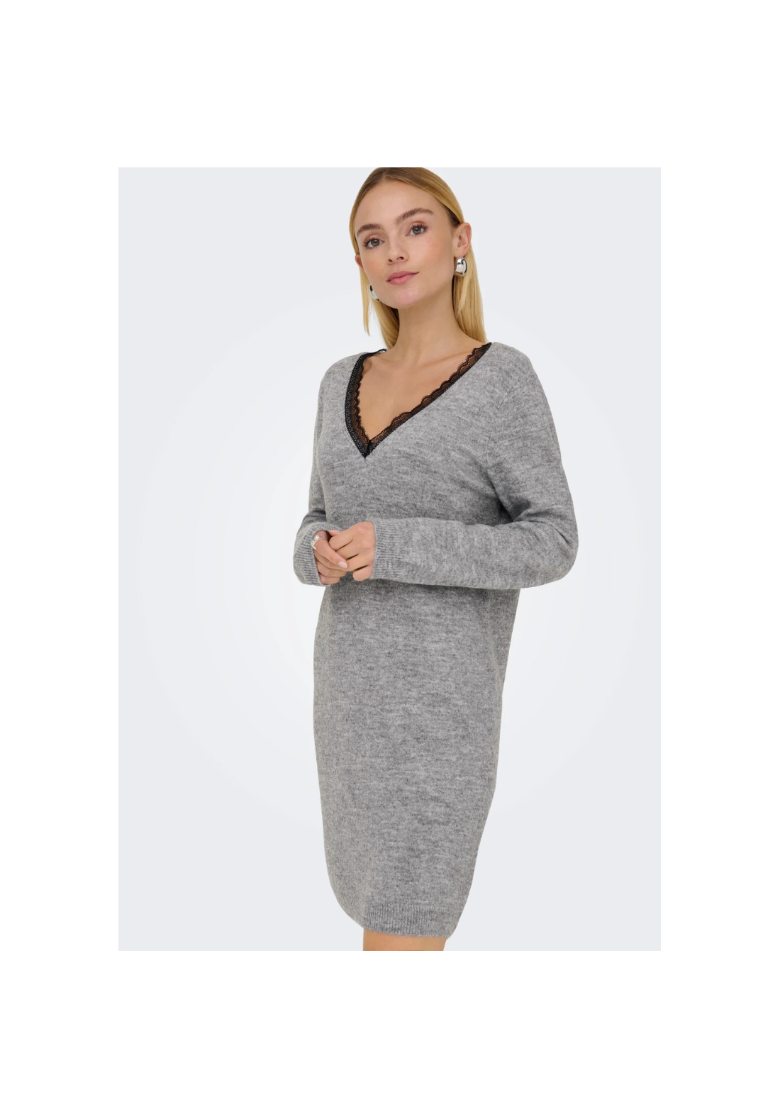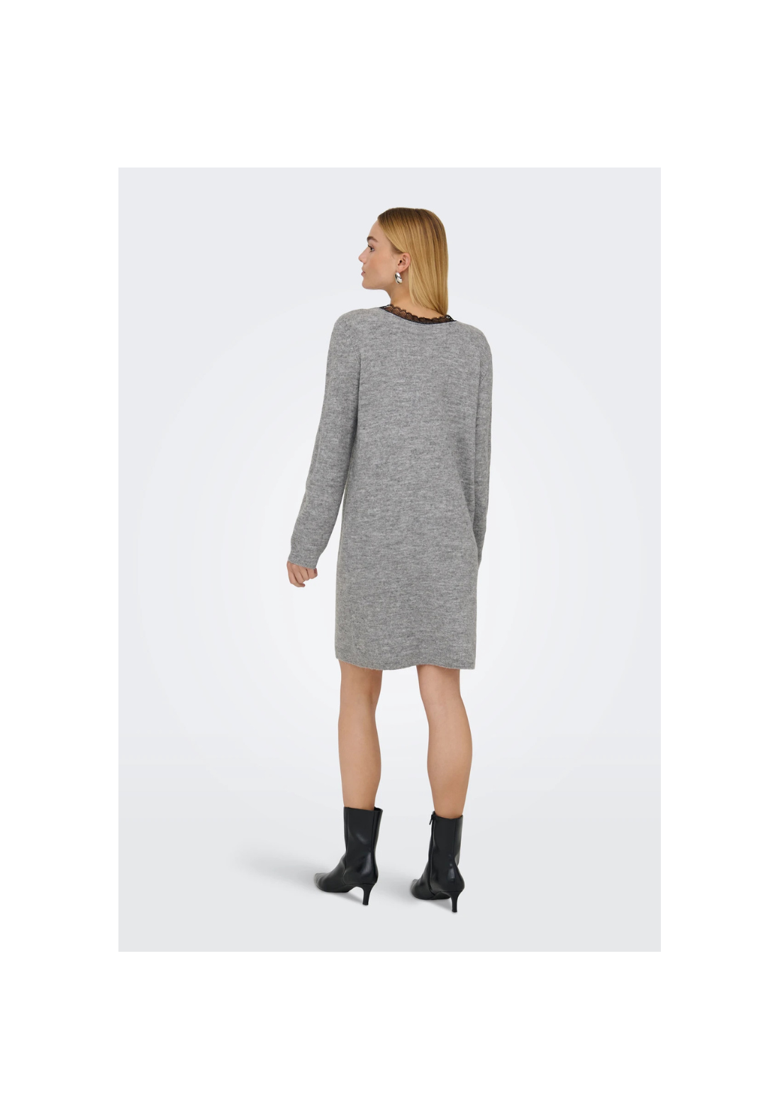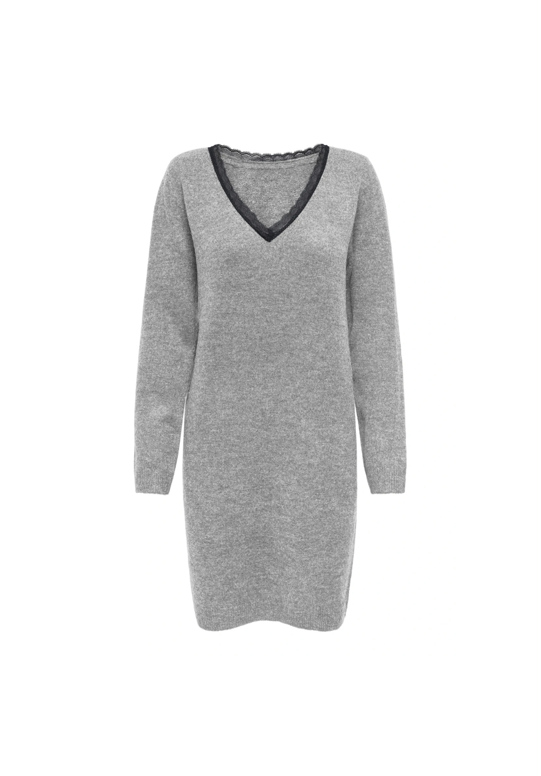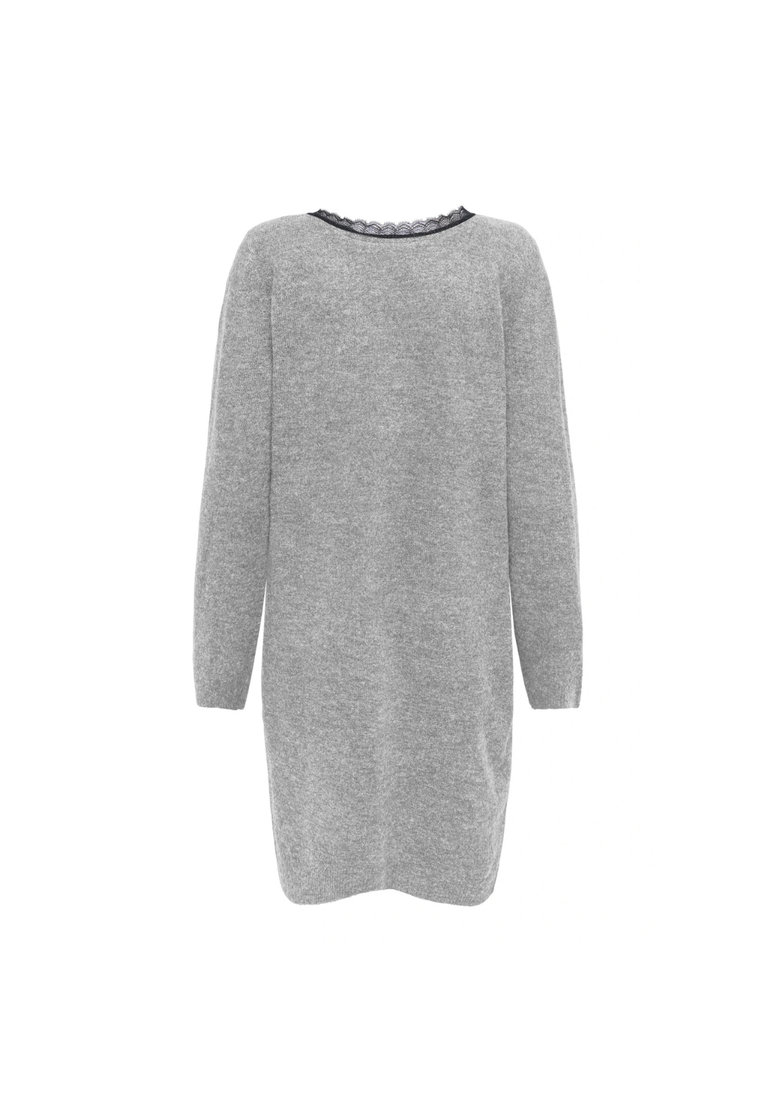 Vestido de punto, de manga larga y cuello en V. Es reversible y tiene detalle de encaje.