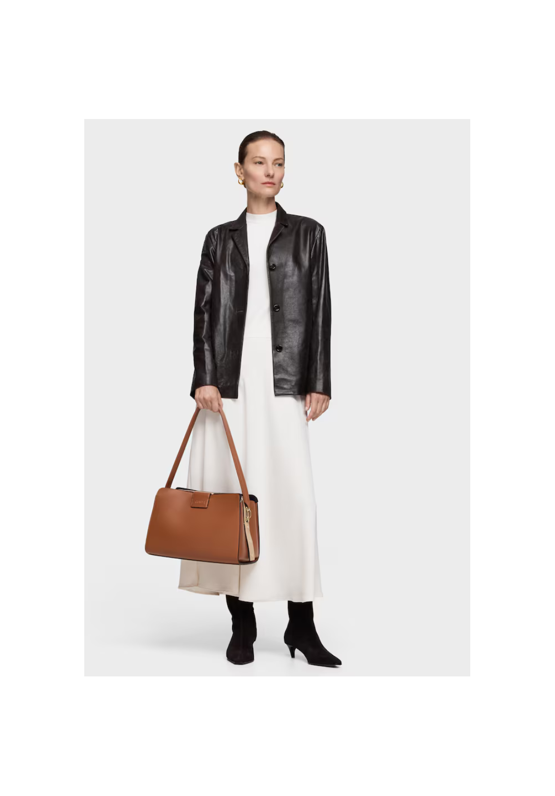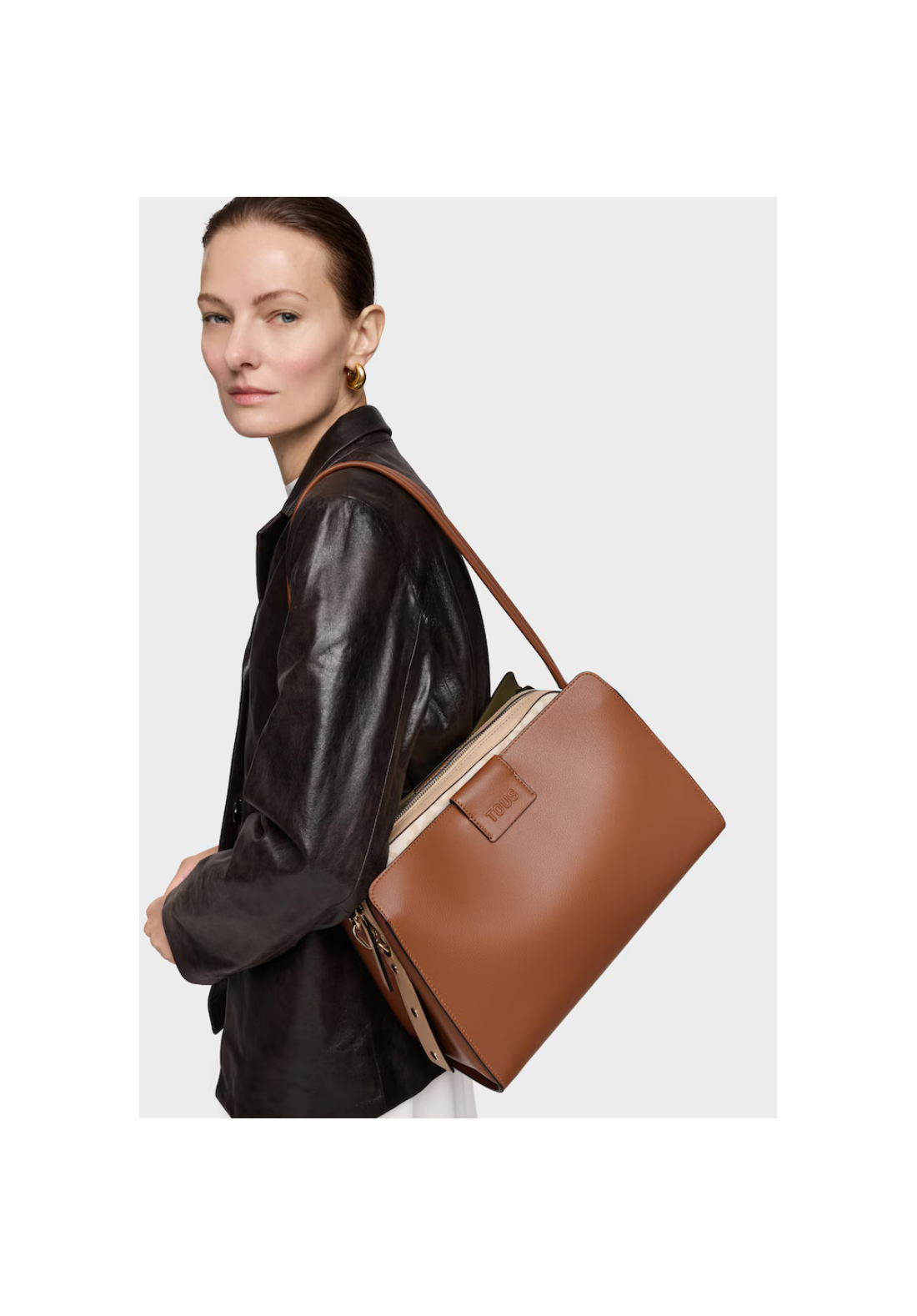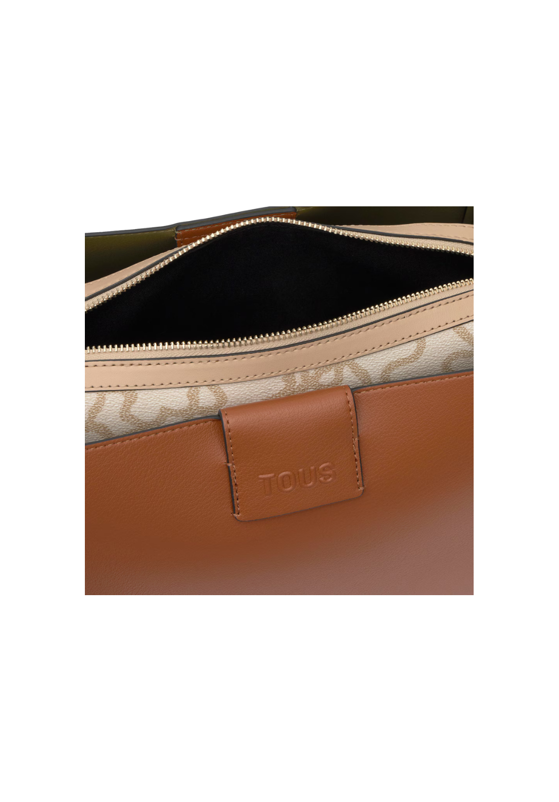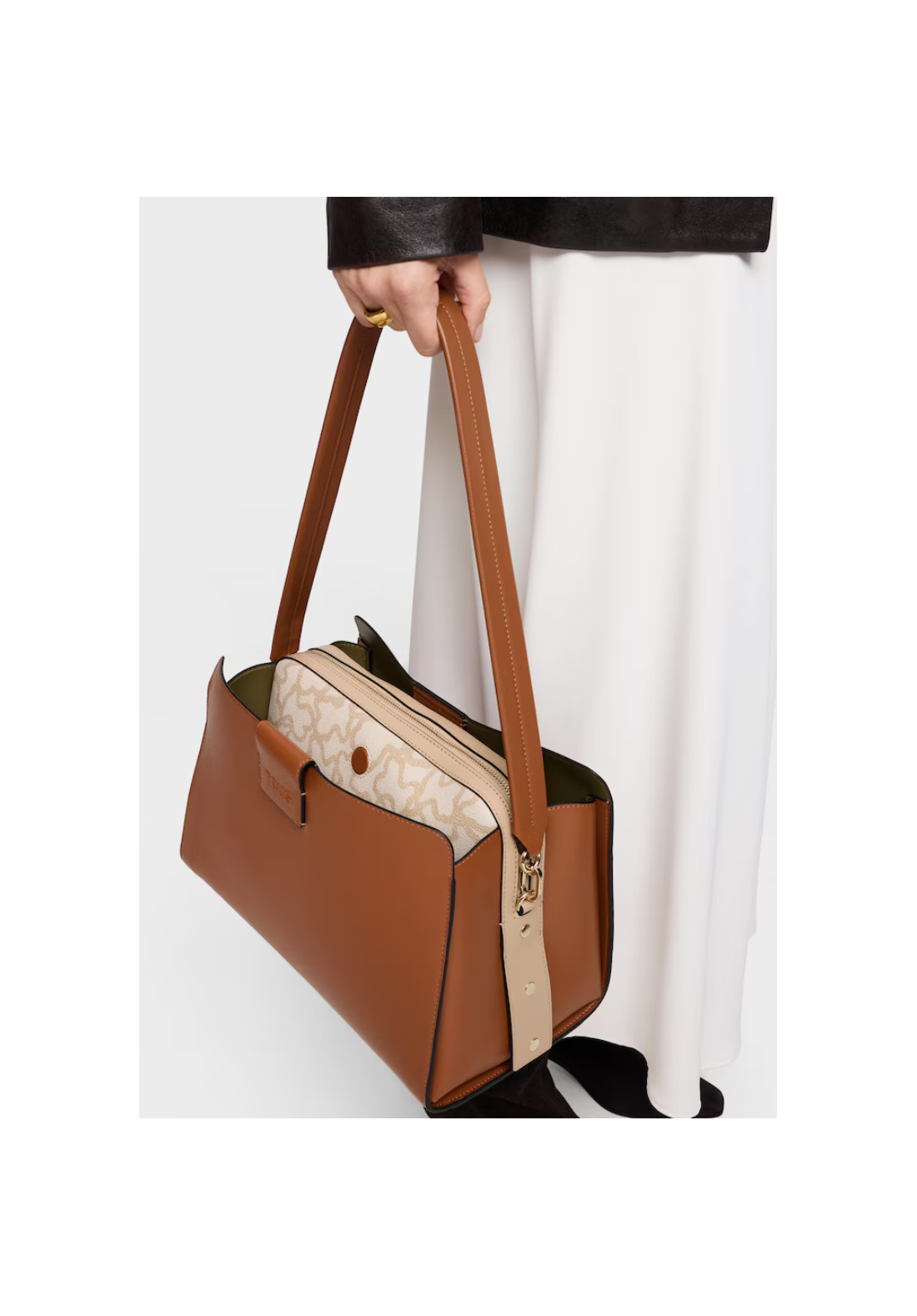 Bolso city mediano Kaos Icon de poliuretano con cierre con botón magnético. Bolsillo interior con cremallera. Asa fija de hombro.