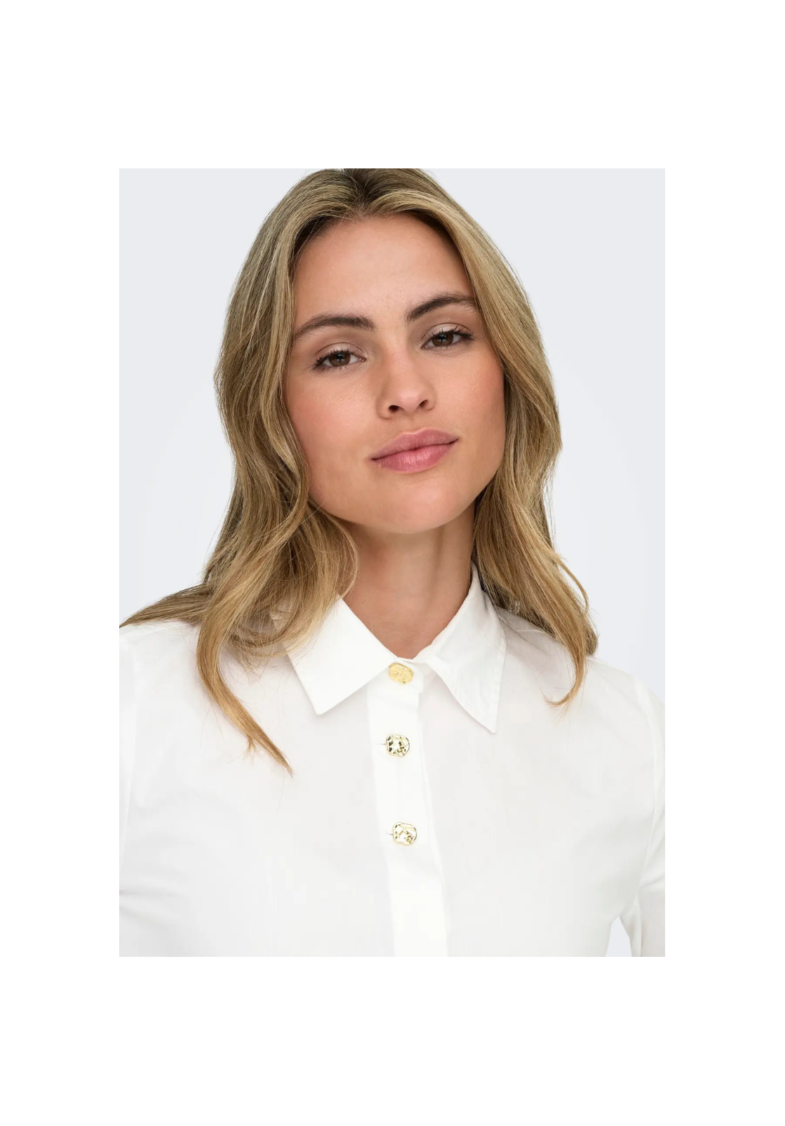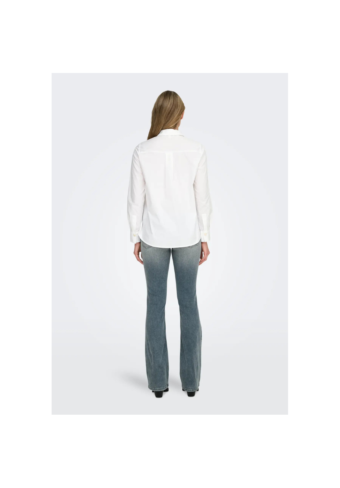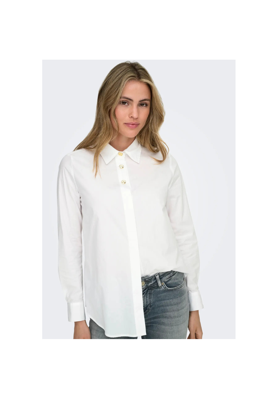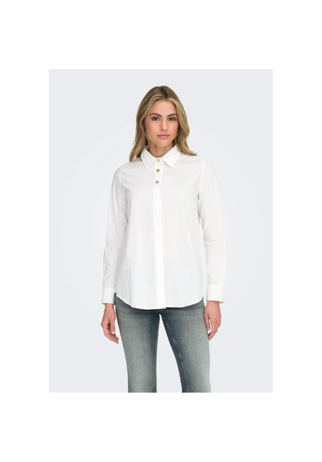Camisa de manga larga, con puños abotonados y cierre frontal de botones.