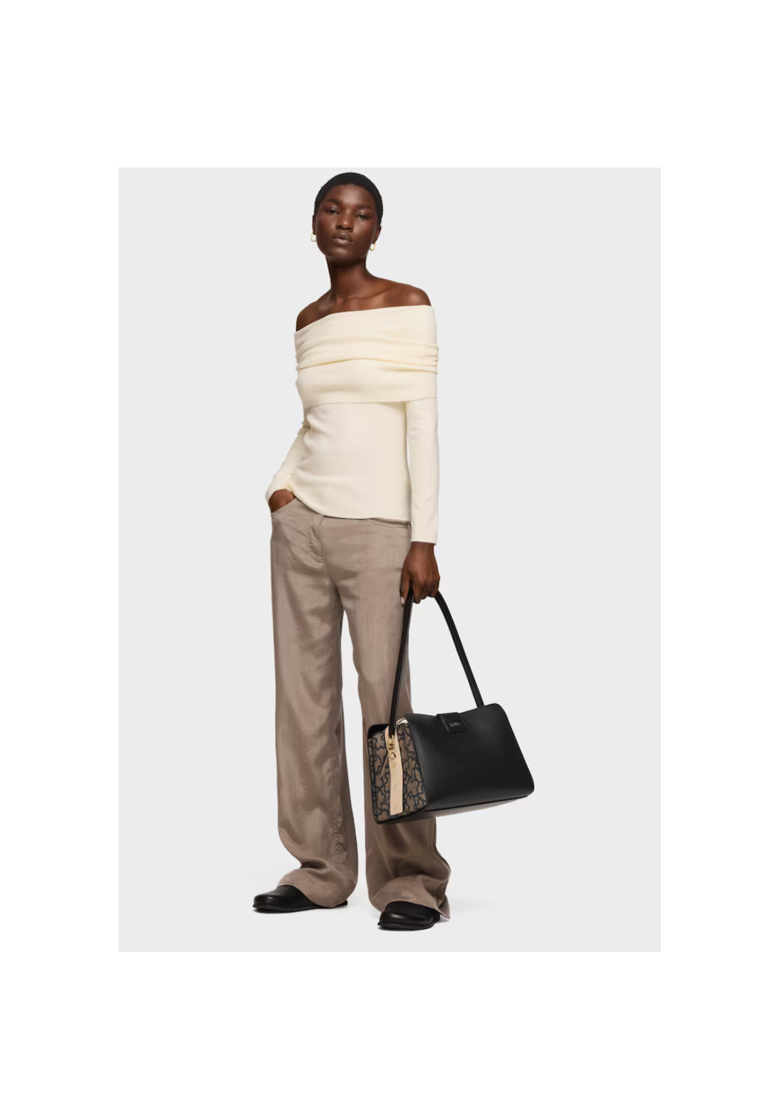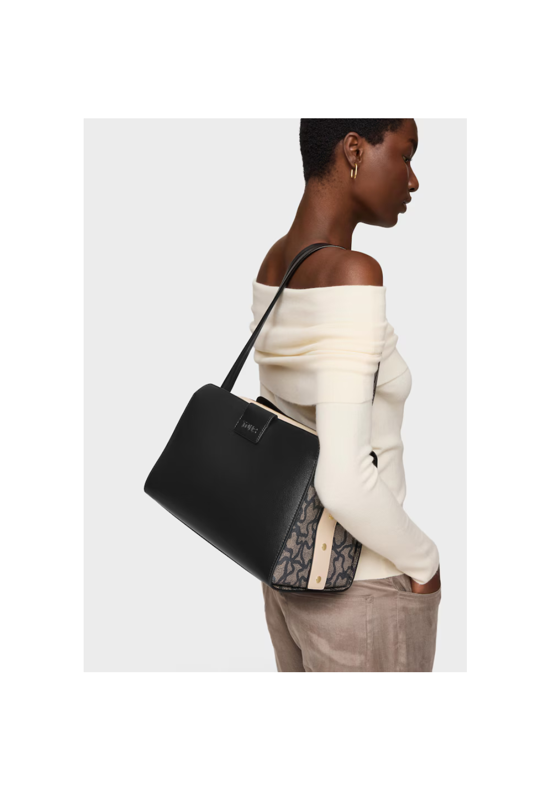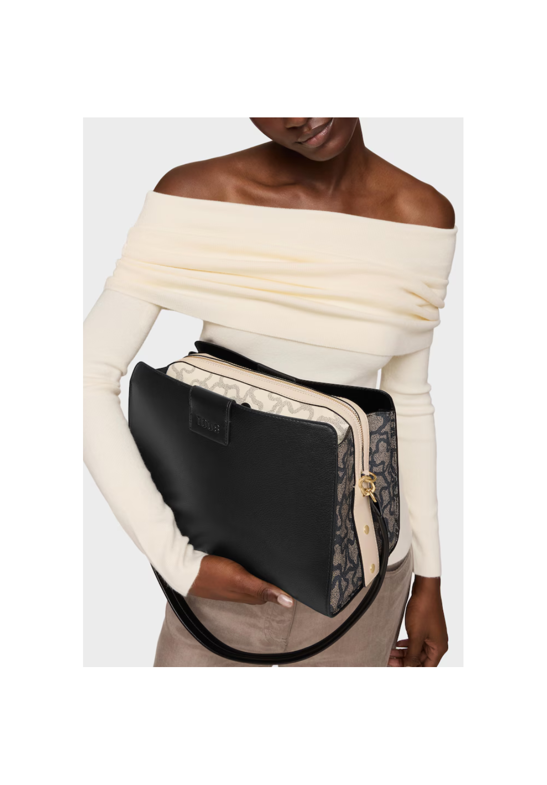 Bolso city mediano Kaos Icon de poliuretano con cierre con botón magnético. Bolsillo interior con cremallera. Asa fija de hombro.