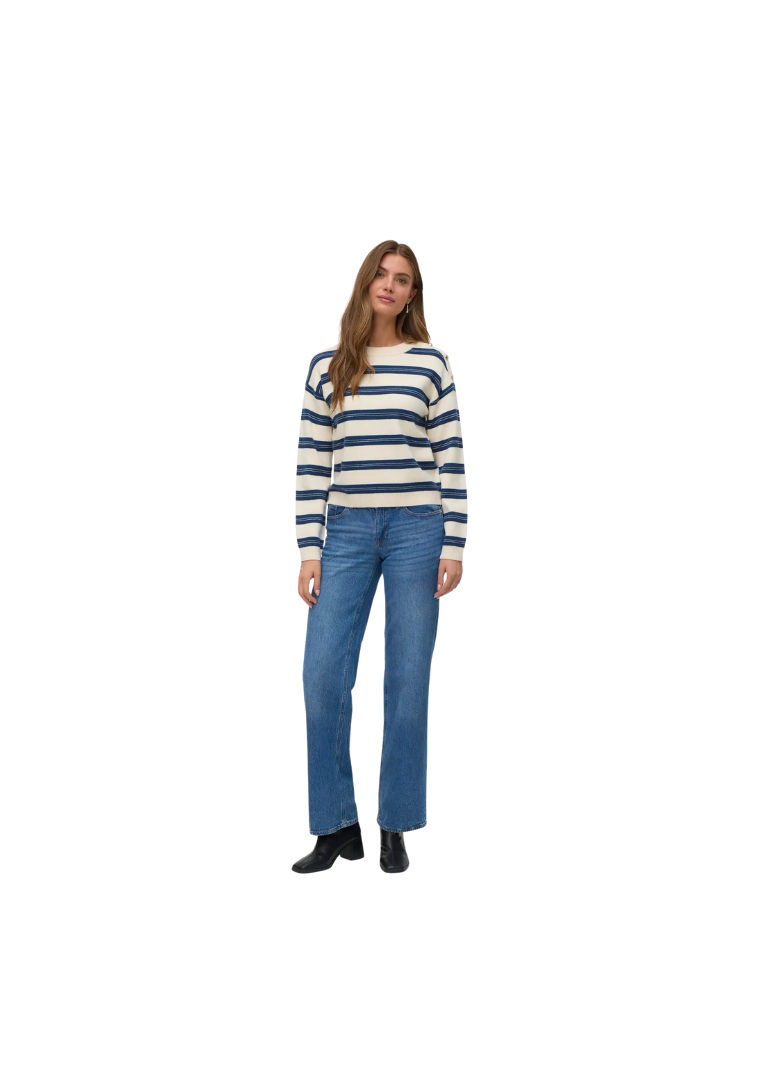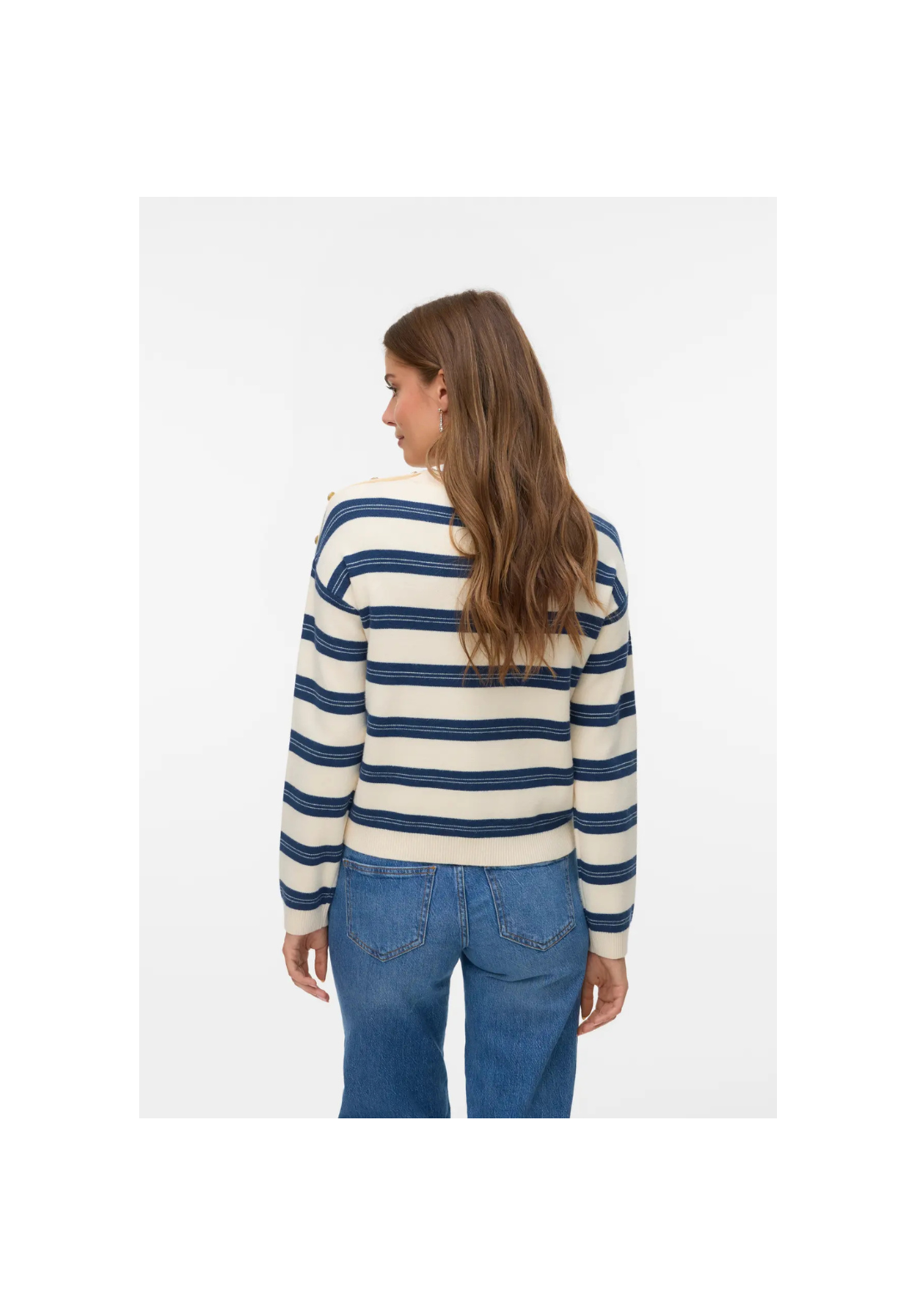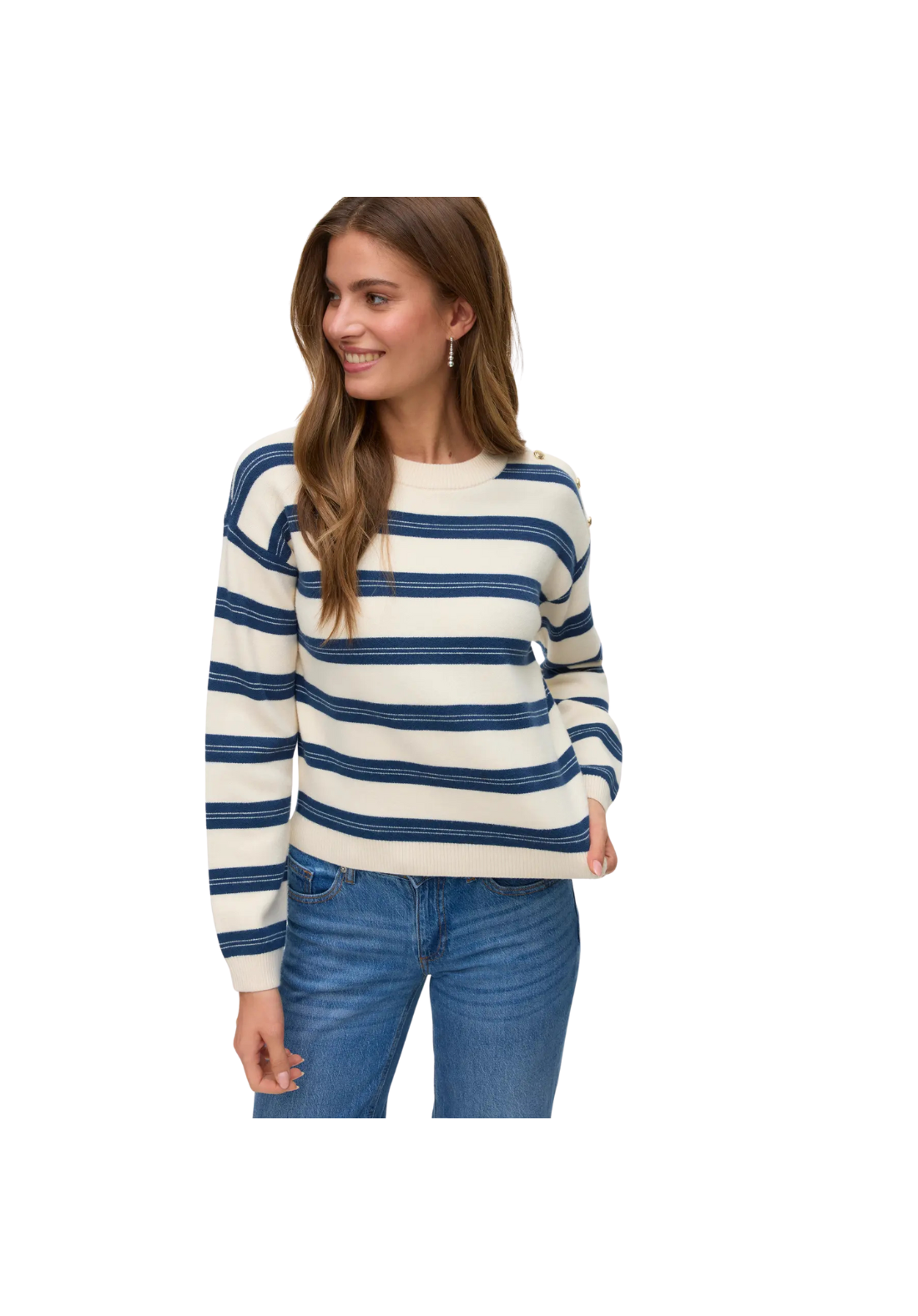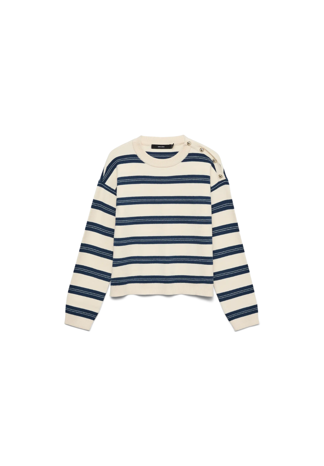 Jersey de punto, de cuello redondo y hombros caídos. Tiene detalle de botones en el cuello.