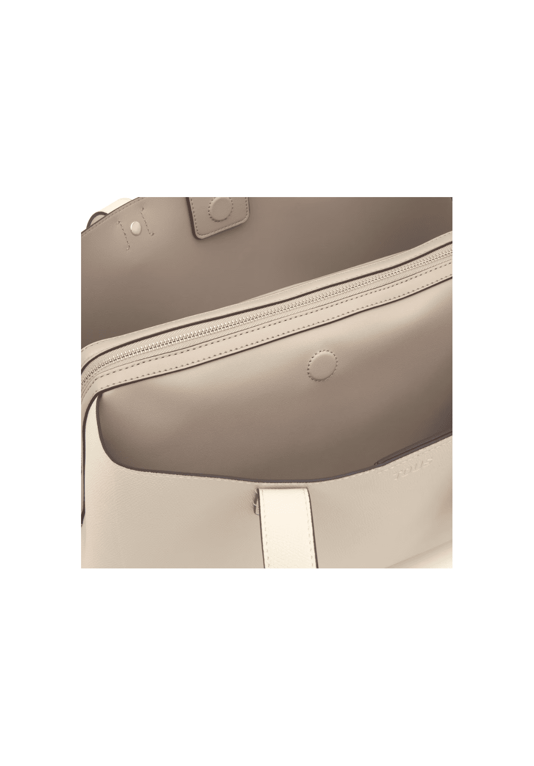 Bolso city mediano The Citybow de poliuretano con cierre con botón magnético. Bolsillo interior con cremallera. Asa fija de hombro.