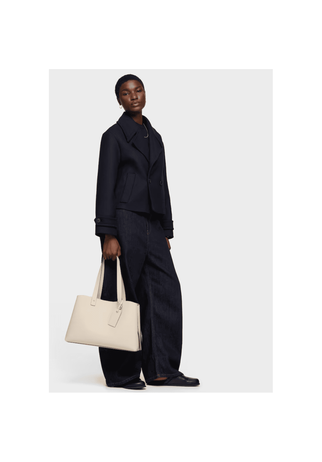 Bolso city mediano The Citybow de poliuretano con cierre con botón magnético. Bolsillo interior con cremallera. Asa fija de hombro.