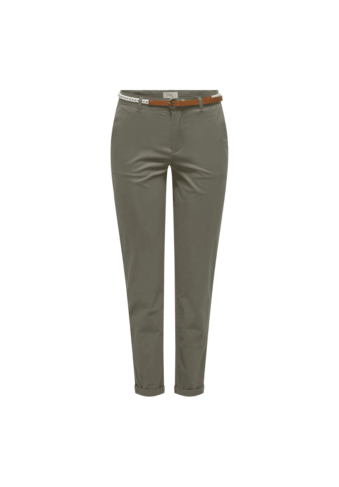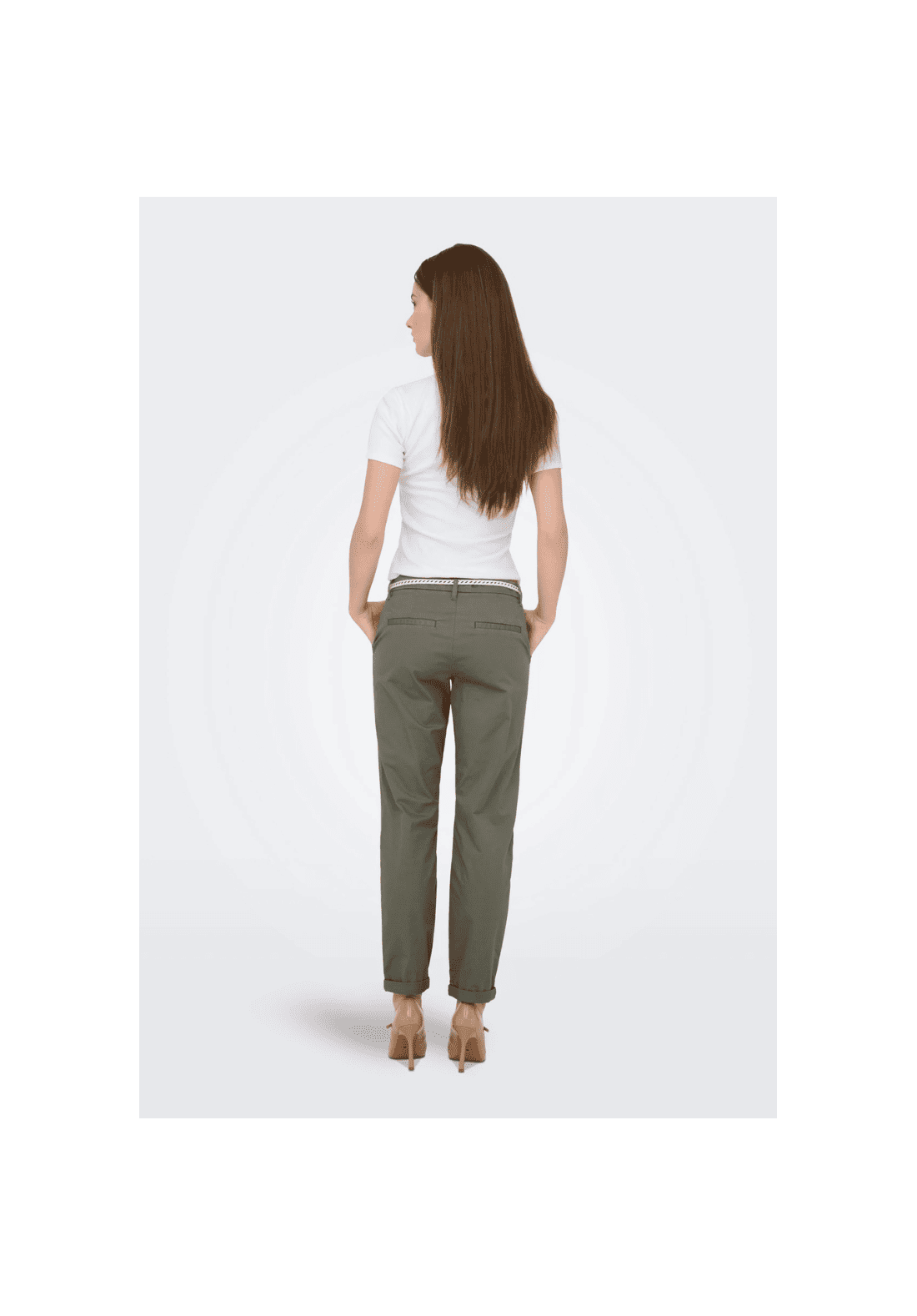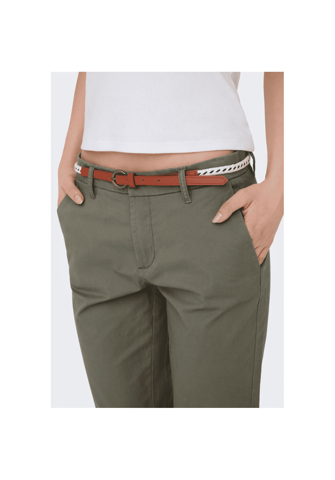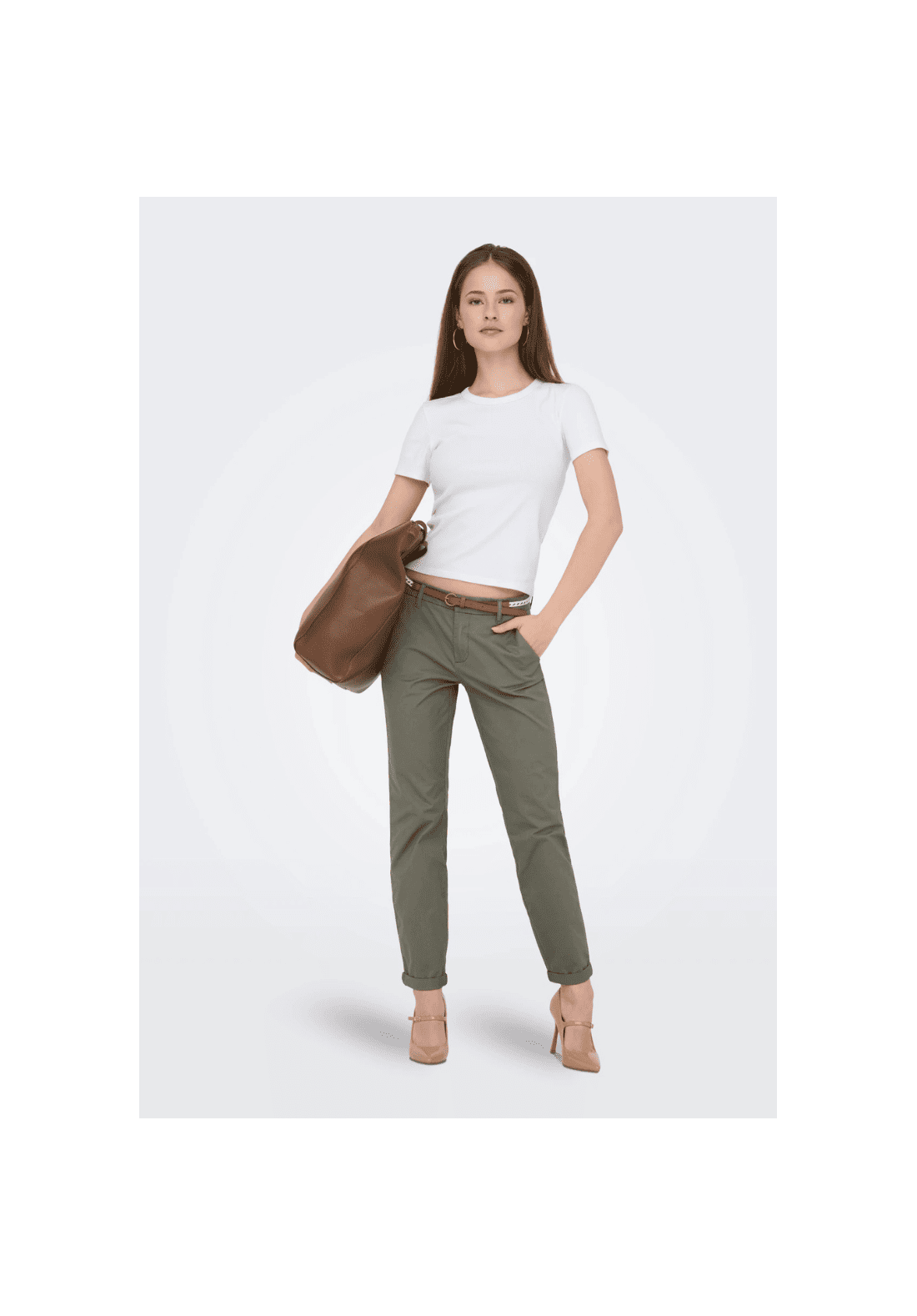 Pantalones chinos de cintura media, con cierre de botón y cremallera. Incluye cinturón.