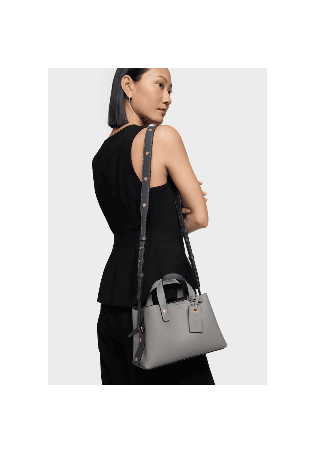 Bolso city pequeño The Citybow de poliuretano con cierre de cremallera. Bolsillo interior abierto. Asa fija de hombro y asa bandolera ajustable y extraíble. Medidas (alto x ancho x fondo): 13,5 x 25 x 15 cm.