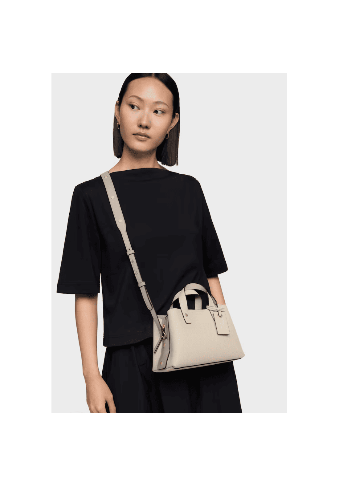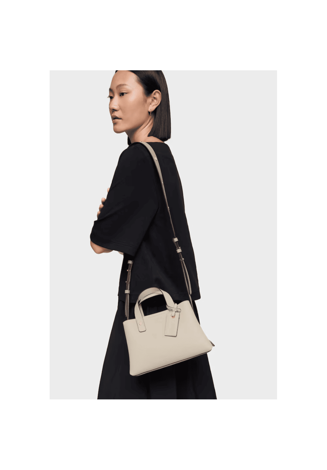Bolso city pequeño The Citybow de poliuretano con cierre de cremallera. Bolsillo interior abierto. Asa fija de hombro y asa bandolera ajustable y extraíble. Medidas (alto x ancho x fondo): 13,5 x 25 x 15 cm.