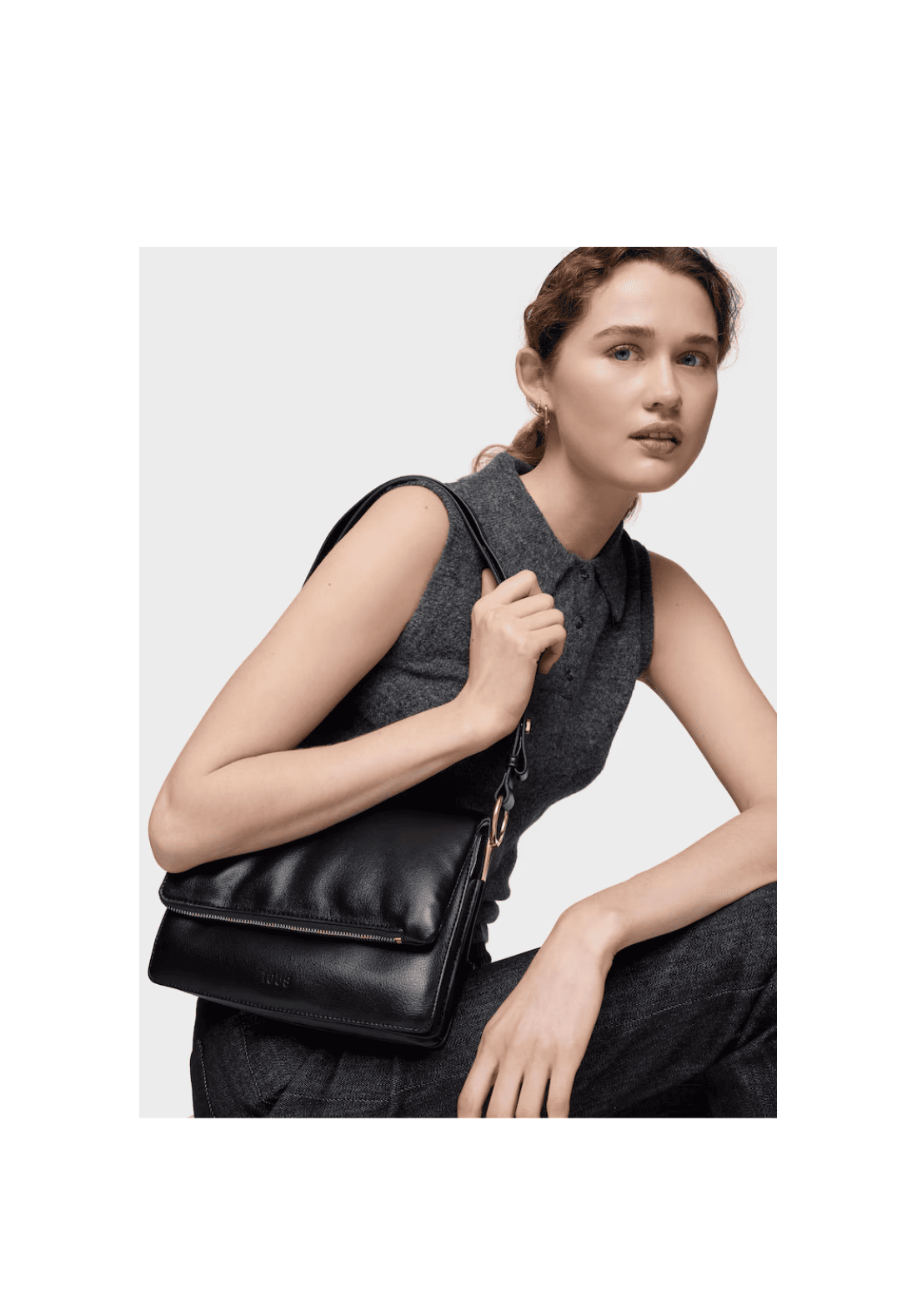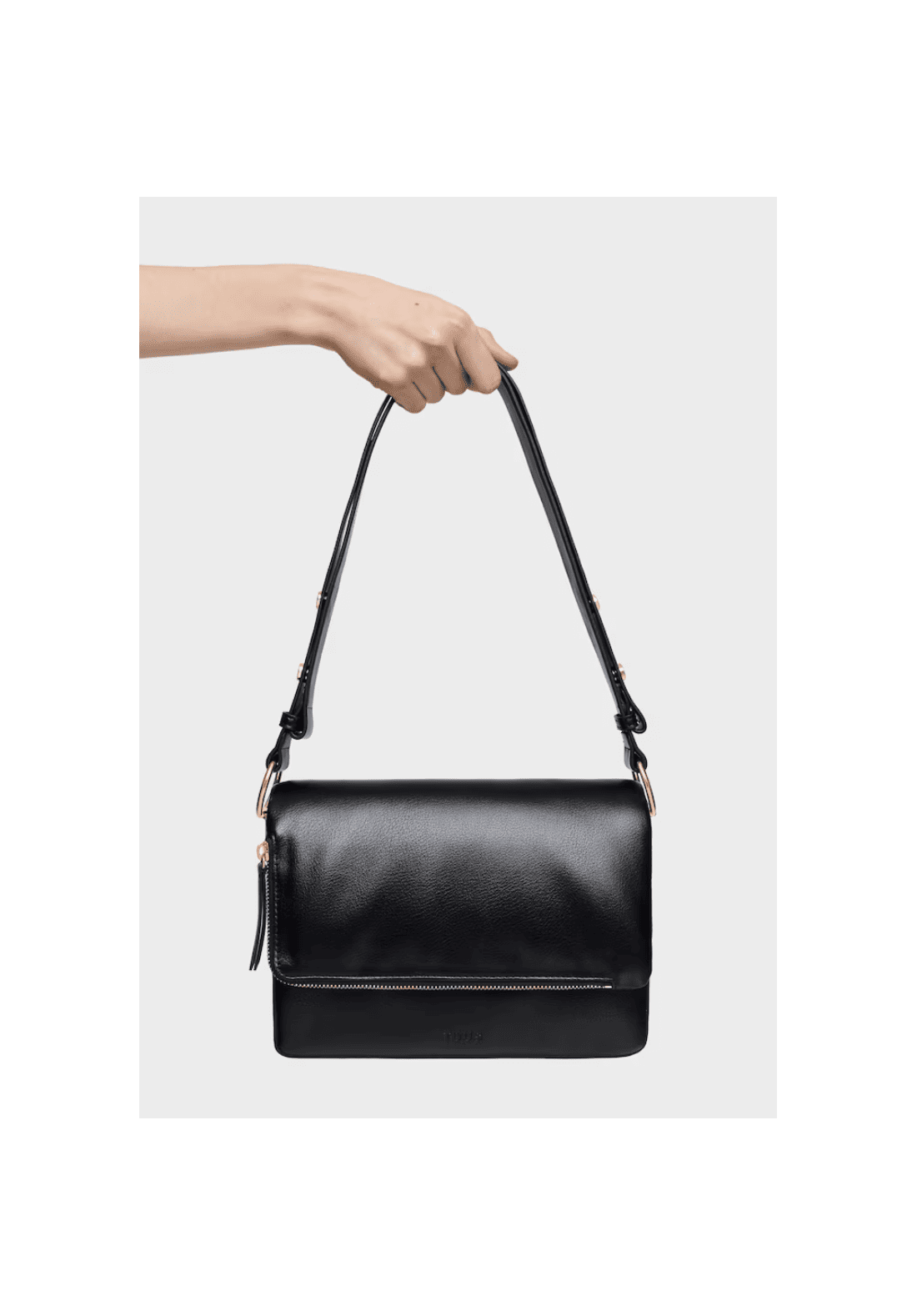 Bandolera mediana Audree Soft con cierre de solapa magnética. Bolsillo interior abierto. Dos compartimentos abiertos en el interior. Asa bandolera ajustable a asa de hombro.