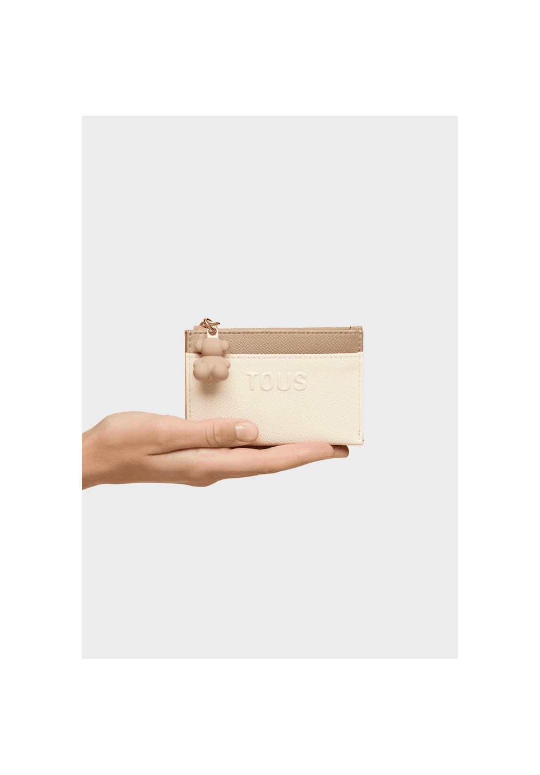 Monedero tarjetero TOUS Audree Saffiano de poliuretano con compartimento especial para monedas con cierre de cremallera. En la parte trasera cuanta con tres ranuras para tarjetas, una de ellas transparente.
