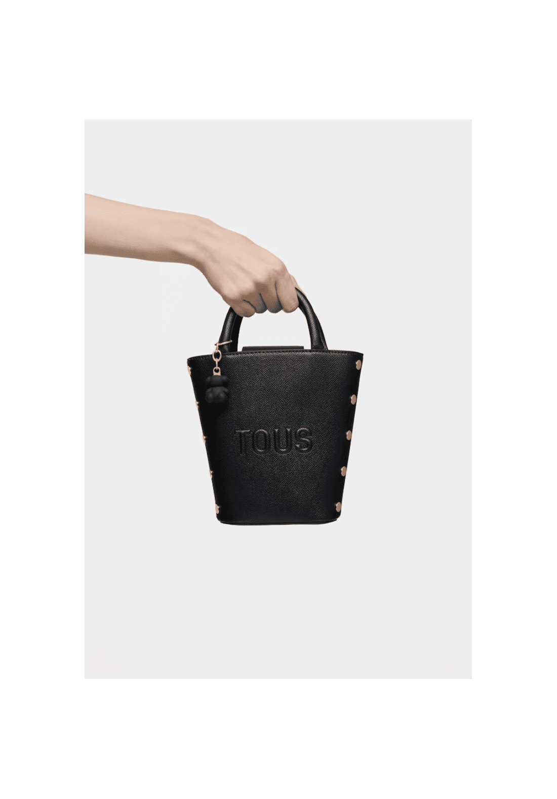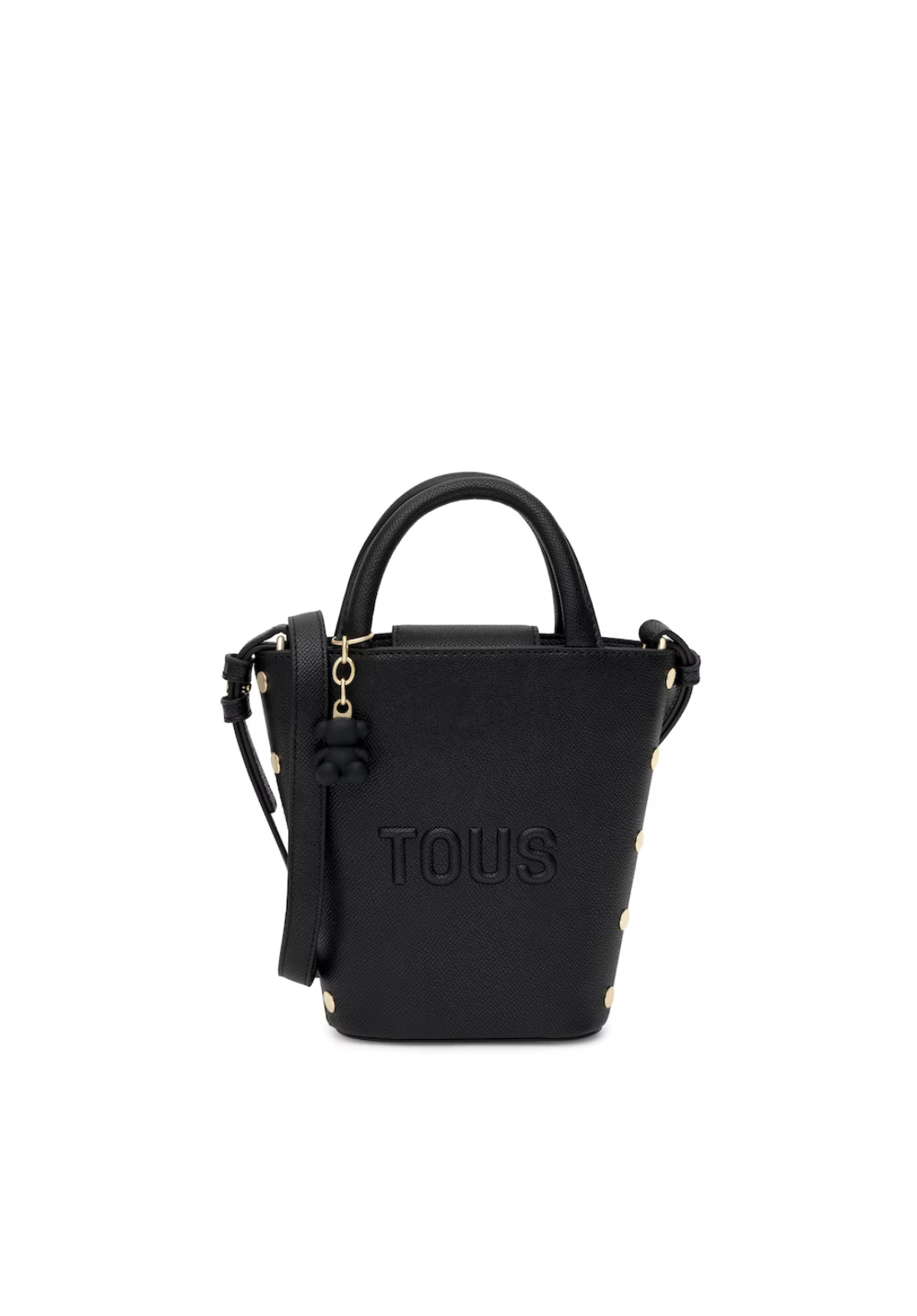 Mini bolso TOUS Back to basics de poliuretano con cierre con botón magnético. Asas fijas de mano y asa bandolera ajustable y desmontable. Incorpora un bonito detalle de oso colgante.