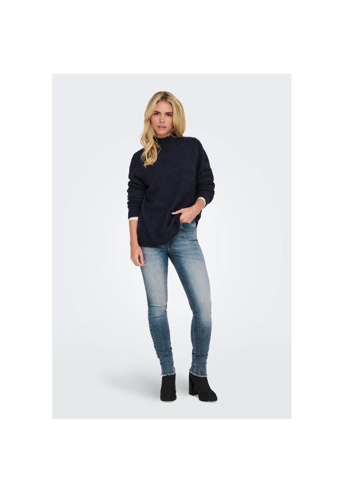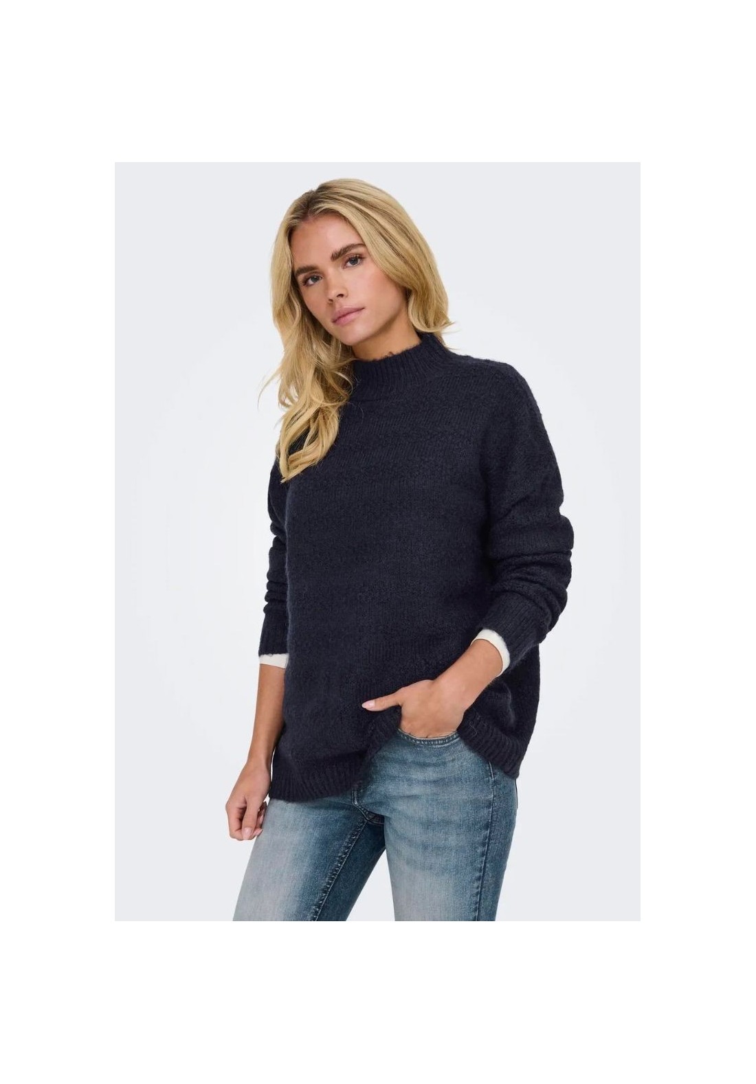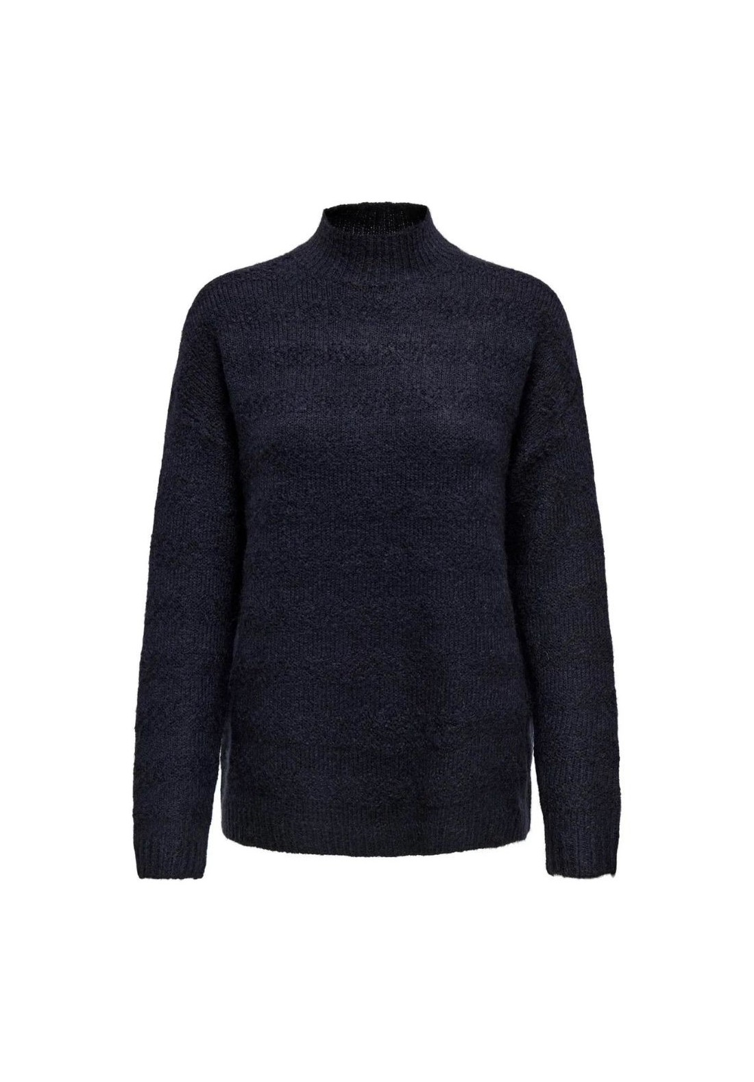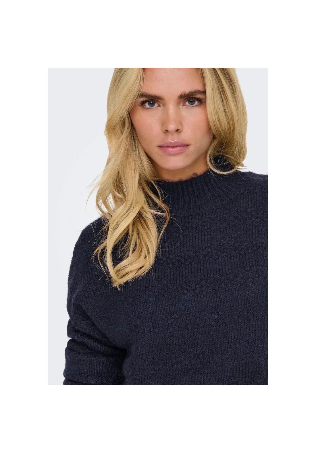 Jersey de punto con cuello semi cisne y rallas a tono con diferente punto.