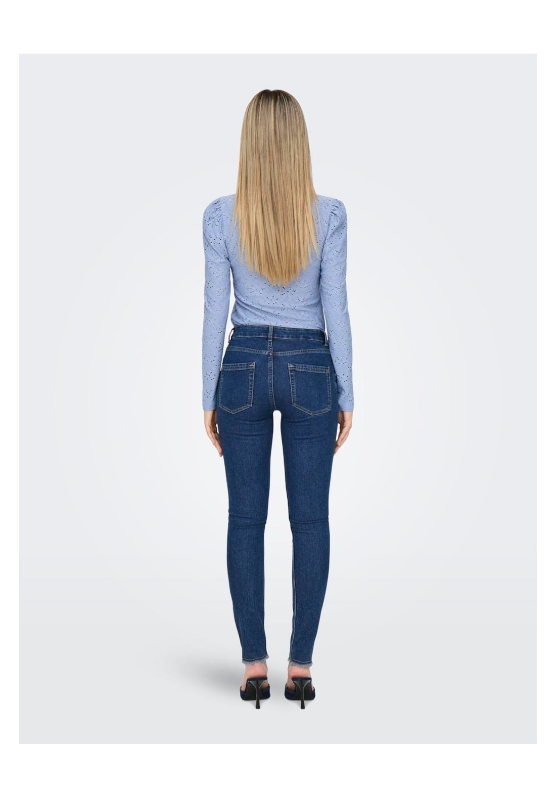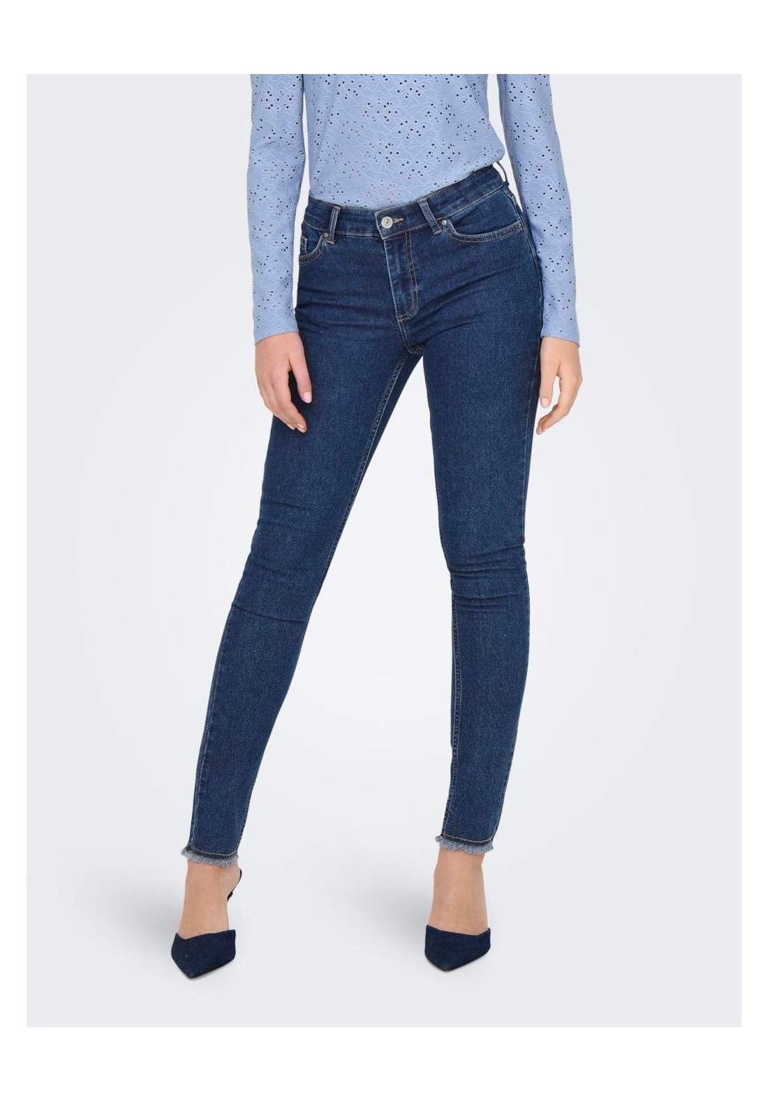 Jeans skinny de tiro medio con detalle desilachado en los bajos el tejido es muy blandito y elástico.