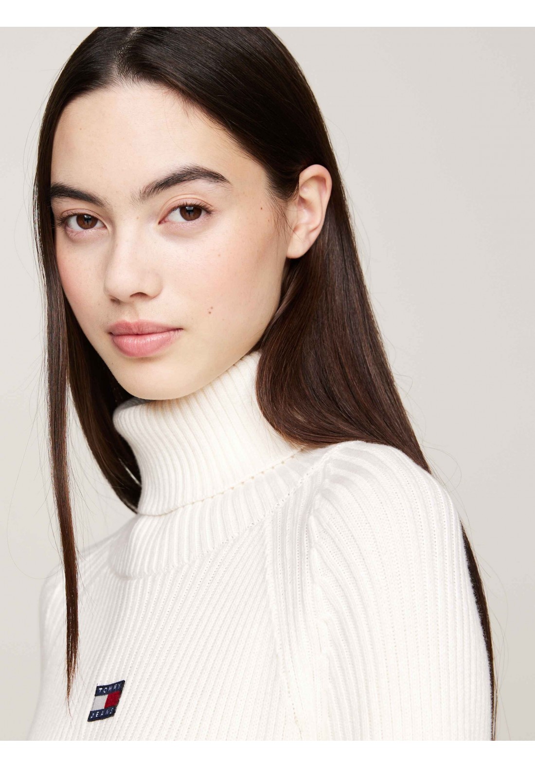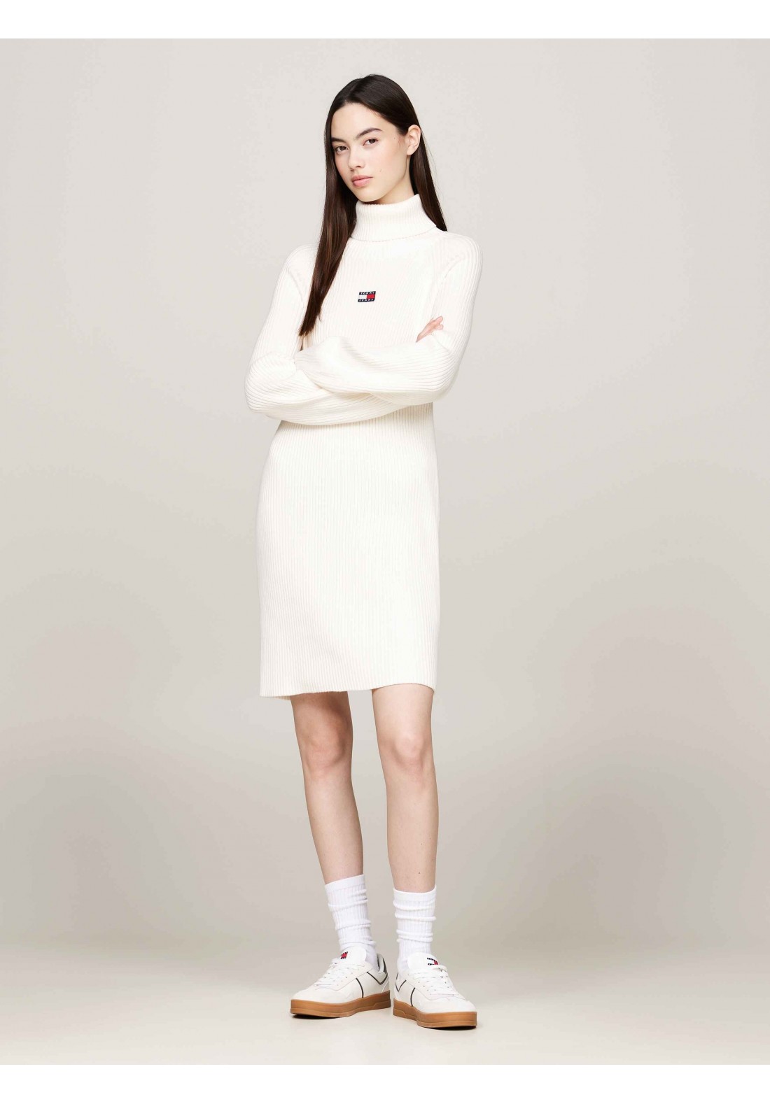 Vestido de punto con cuello vuelto y bandera bordada a la altura del pecho