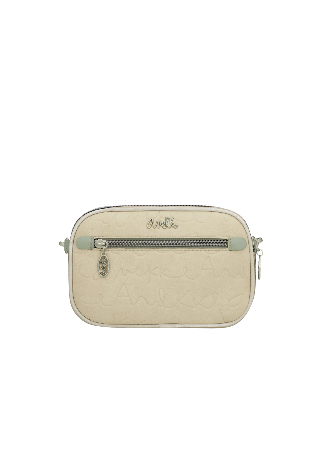 Bandolera de tamaño pequeño, tiene tres compartimentos independientes, todos cierran con cremallera. Interior forrado y tiene también bolsillos exteriores, tanto en el frontal como trasera. Tiene un asa bandolera regulable a diferente largo.