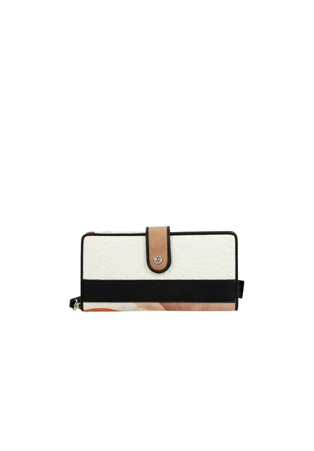 Billetero de tamaño grande, tiene dos compartimentos principales: parte trasera, donde tiene un amplio billetero y espacio para billetes, tarjetas o documentos, y la parte superior con cierre de cremallera,en su interior podrás guardar monedas. Interior forrado. Tiene también un asa de mano para transportar más cómodo.