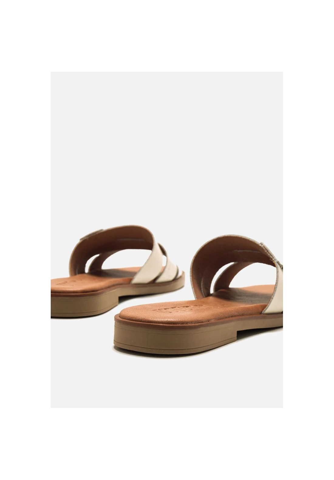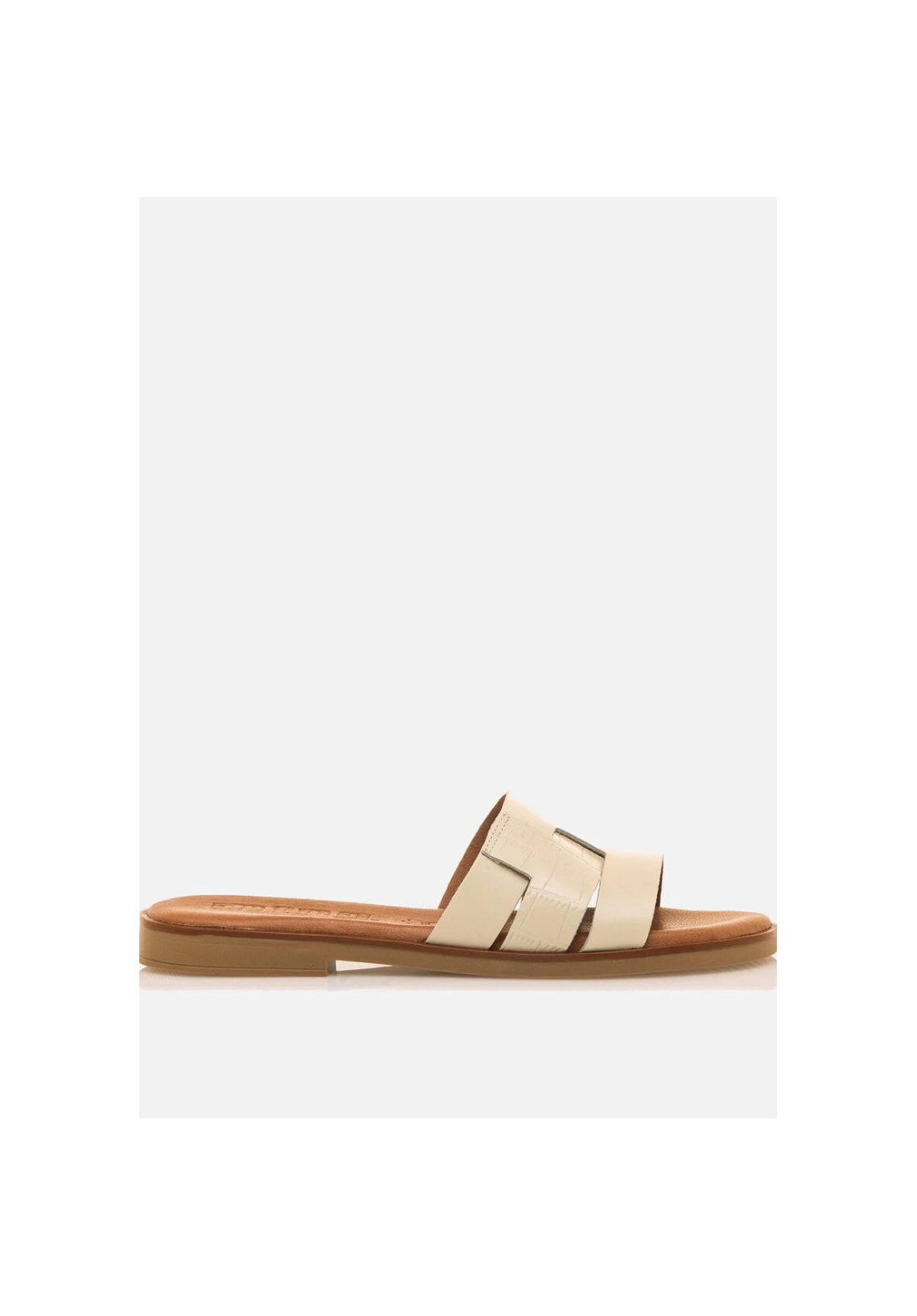 Sandalia plana de piel de color blanco roto Alysa. Sandalia con tiras lisas y con textura de efecto serpiente. Son muy cómodas por su suela plana y su planta de piel acolchada.