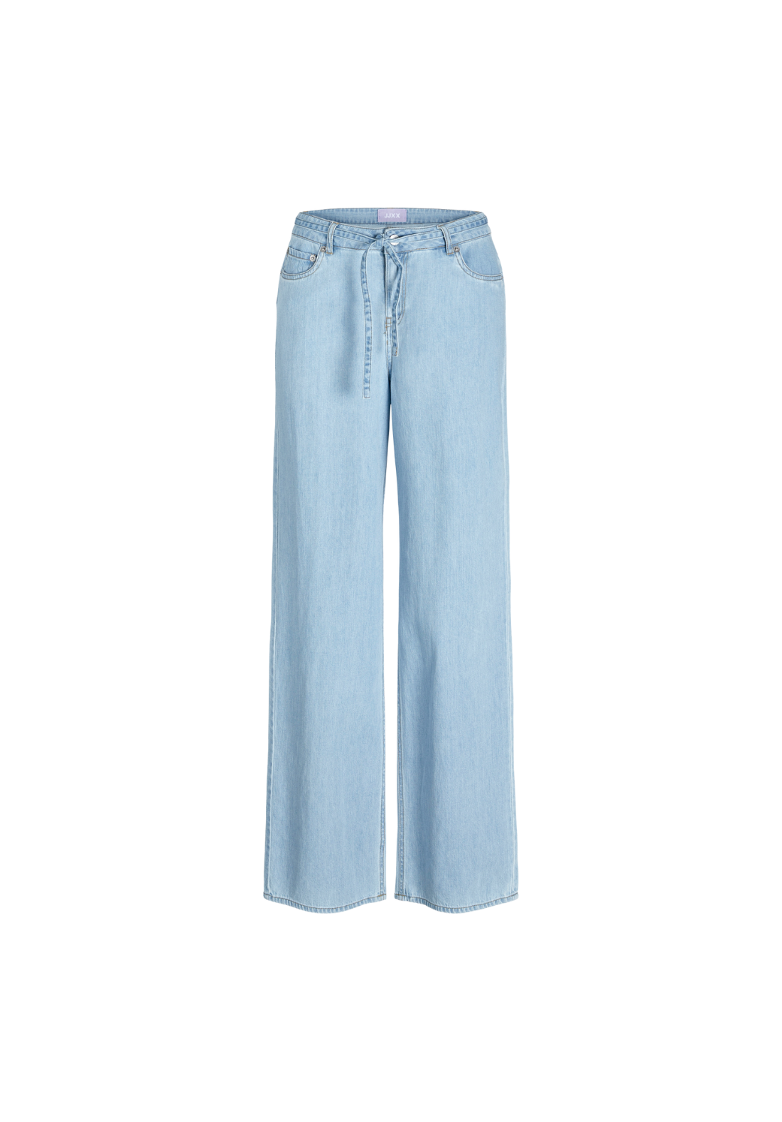 Jeans de corte wide, bragueta con cremallera, bolsillos traseros y delanteros.
