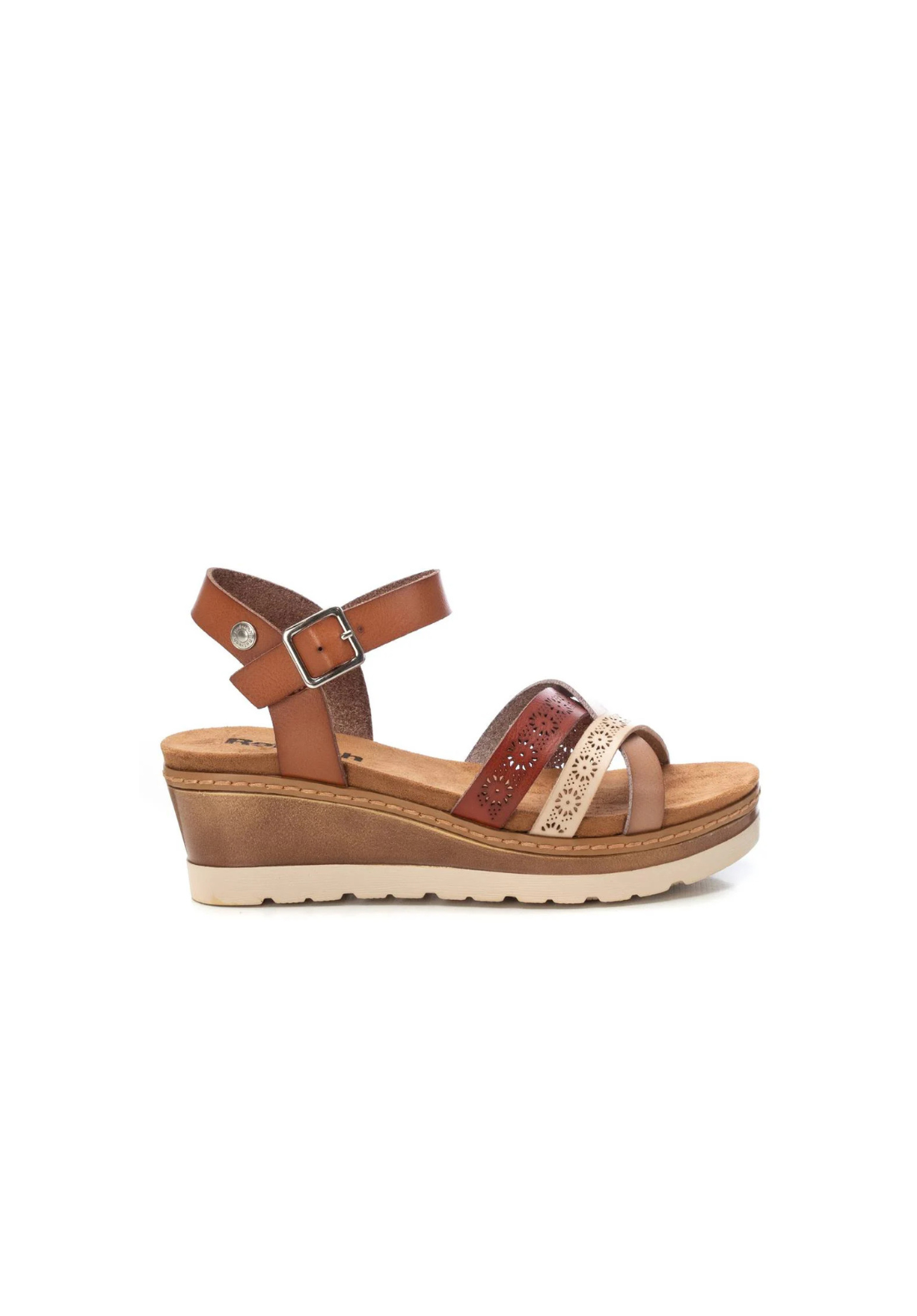 Sandalia vegana. Diseño de pala multitiras con pulsera que ajusta el tobillo. Cómoda planta acolchada. Cuña de 6 cm con suela de goma antideslizante