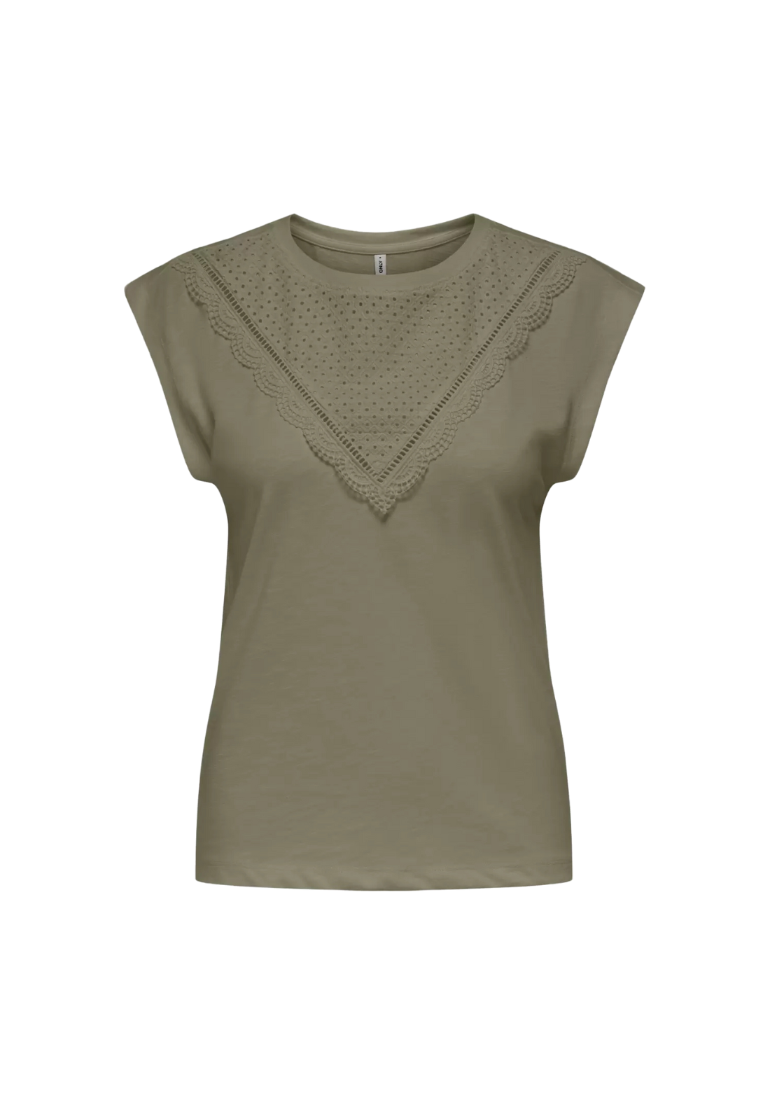 Top sin mangas, con cuello redondo y detalle bordado en pico.