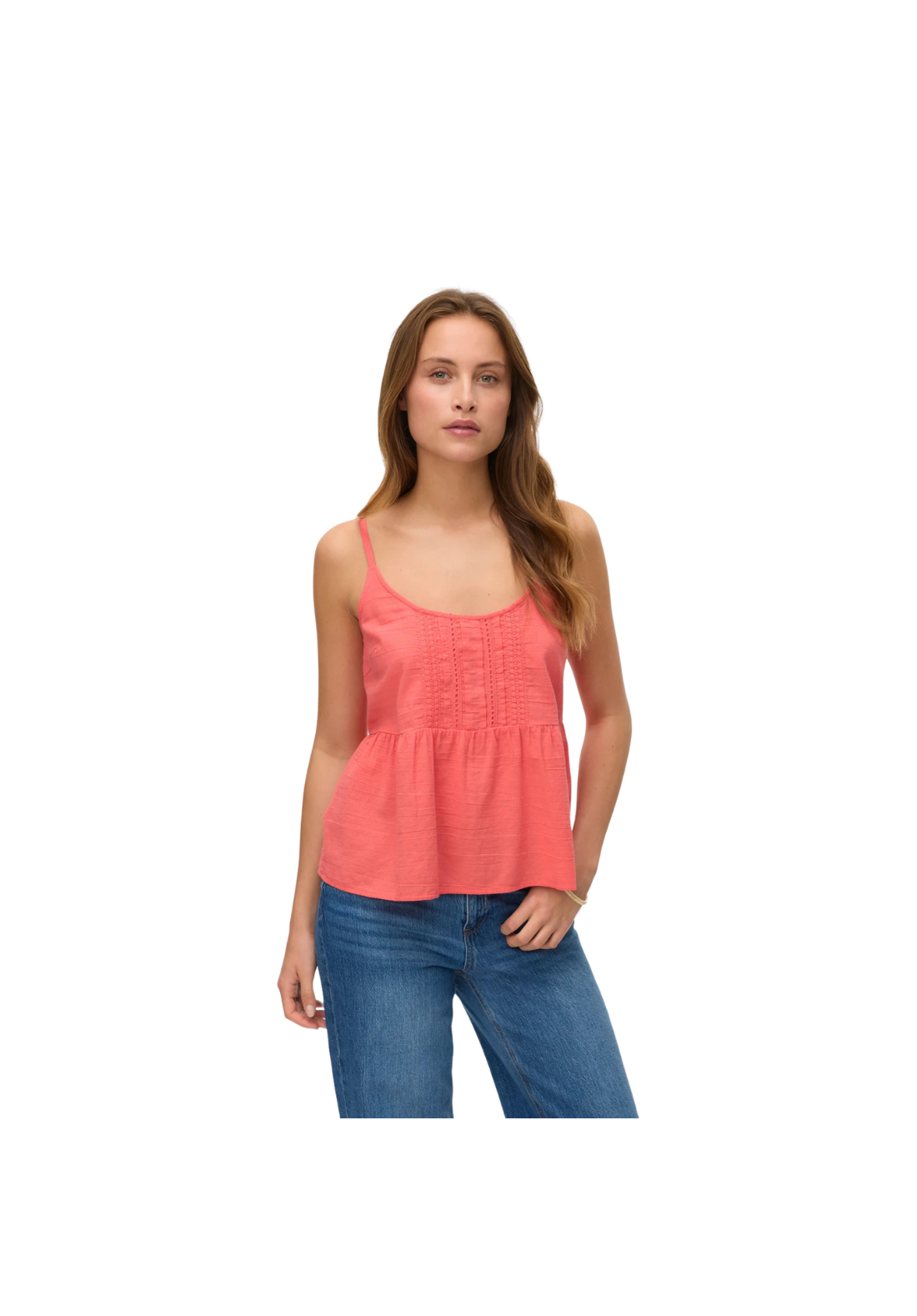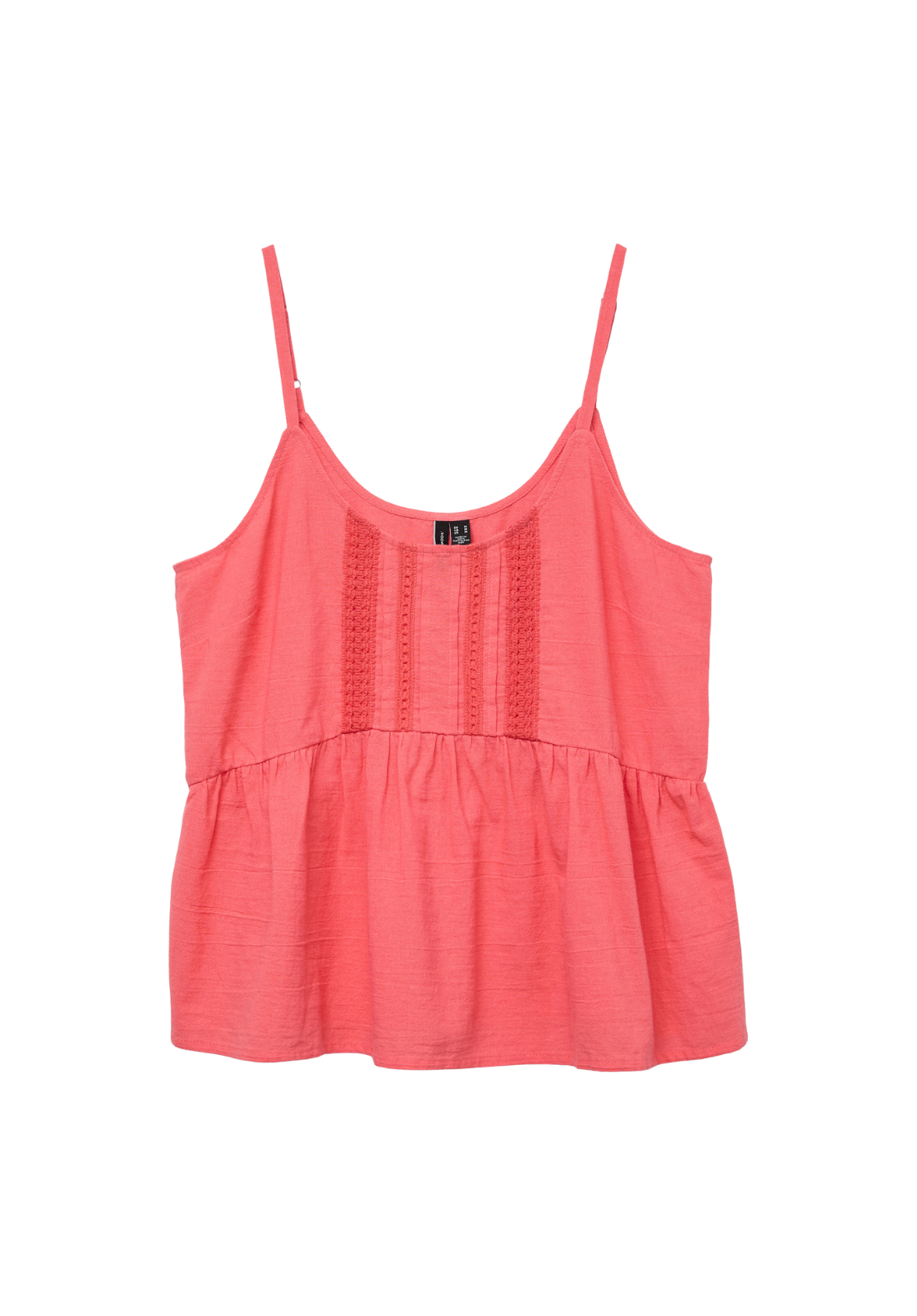 Top de tirantes con cuello redondo y detalle de encaje en el pecho.