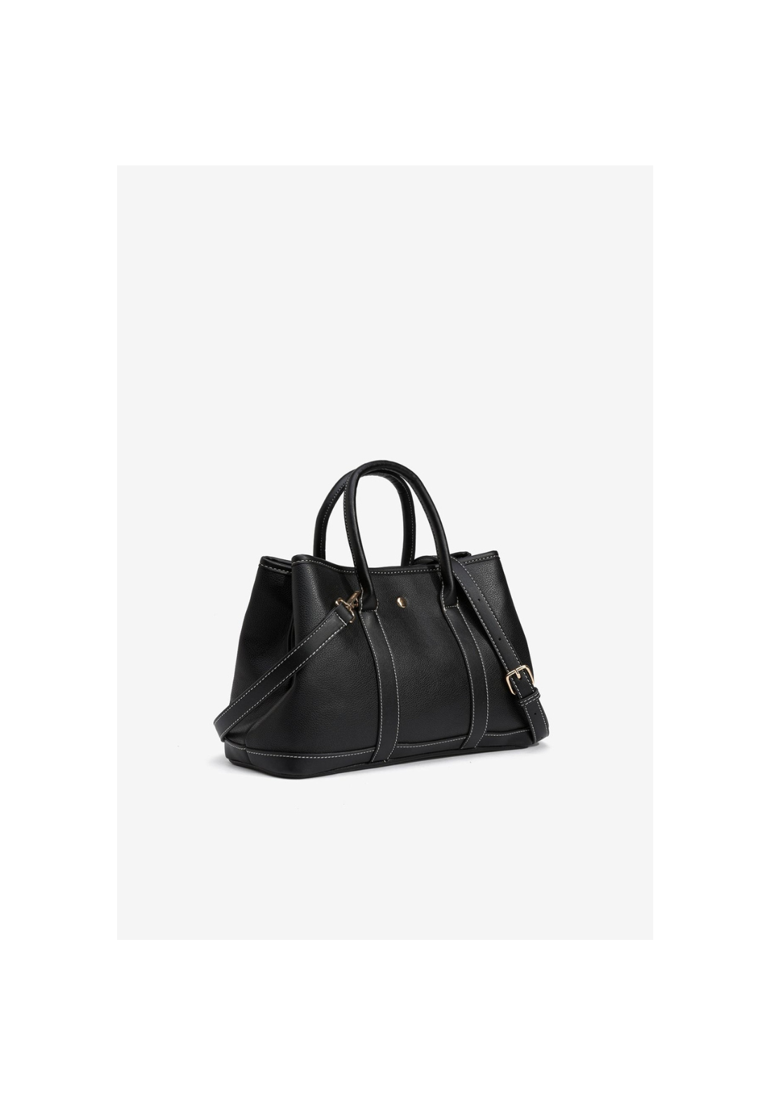 Bolso City efecto piel, con tres compartimentos interiores, con dos cierres magnéticos laterales y cierre superior de cremallera. Lleva asas de mano fijas, correa ajustable, y un bolsillo interior con cierre de cremallera.