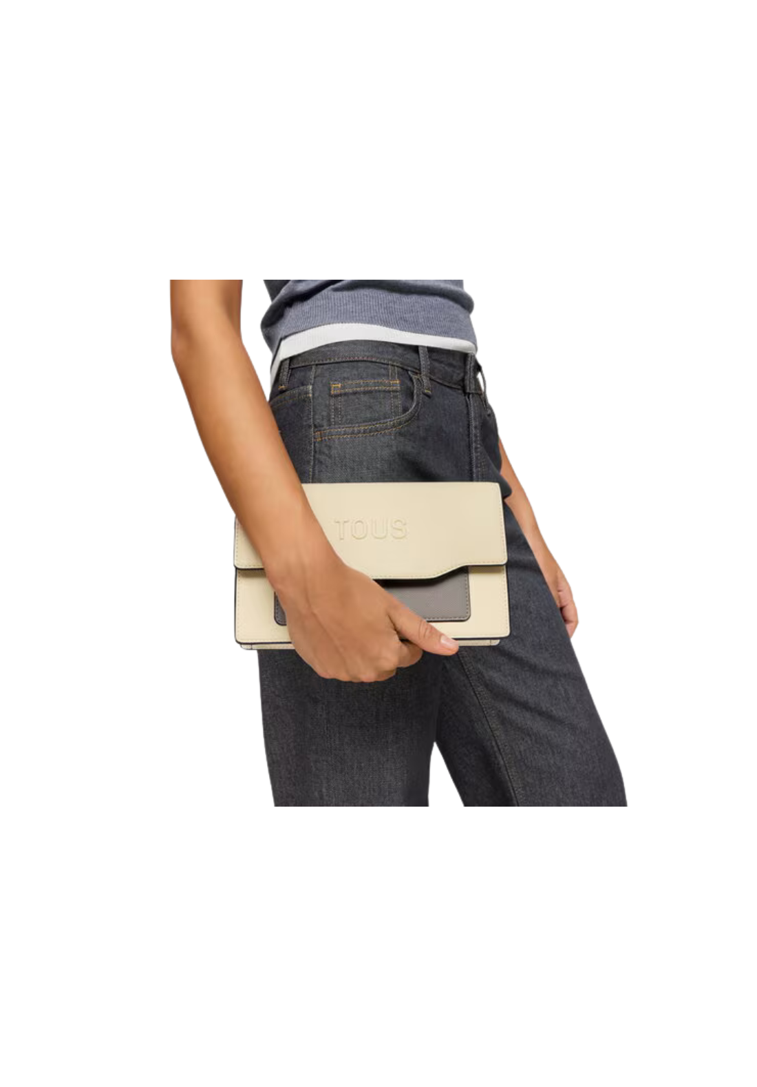 Bolso clutch Audree Saffiano de poliuretano con cierre de botones a presión. En el interior cuenta con cuatro ranuras para tarjetas. Bolsillo exterior abierto. Asa de mano extraíble.