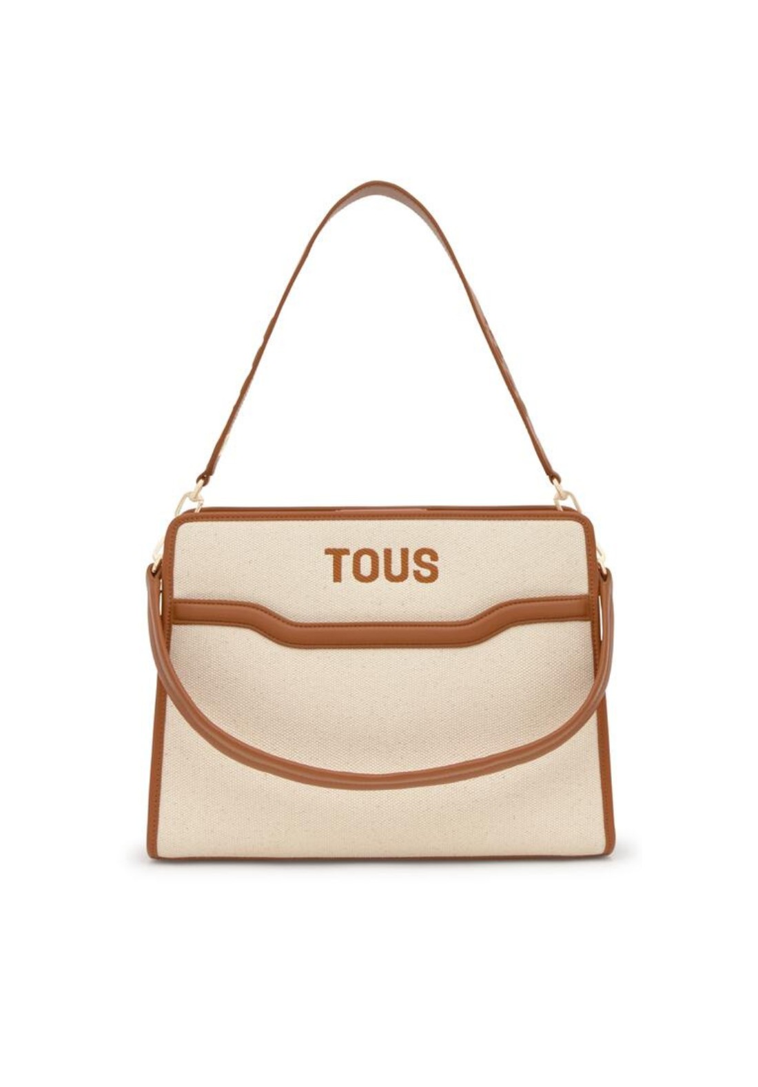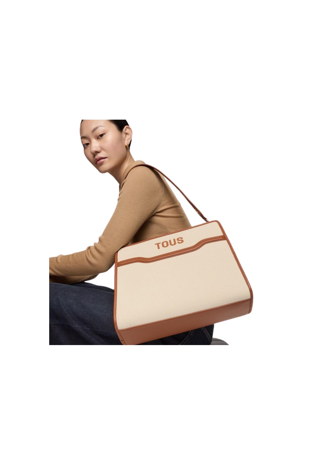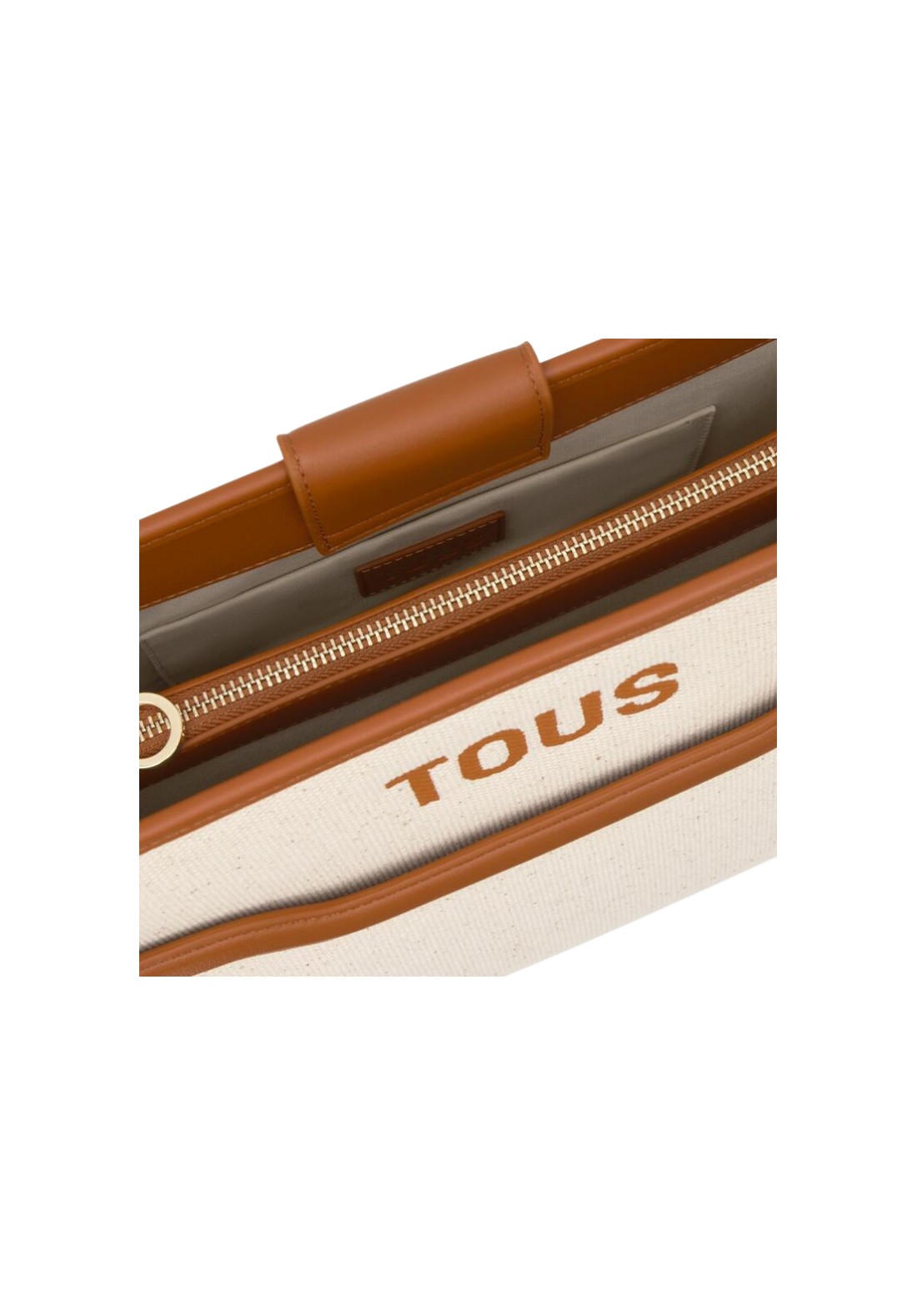 Bolsa shopper mediano Audree Canvas de algodón con detalles de poliuretano y piel vacuna con certificación LWG. Tiene el cierre magnético y dos compartimentos separados por uno con cremallera. Bolsillo interior y bolsillo exterior abiertos. Asa de hombro extraíble.