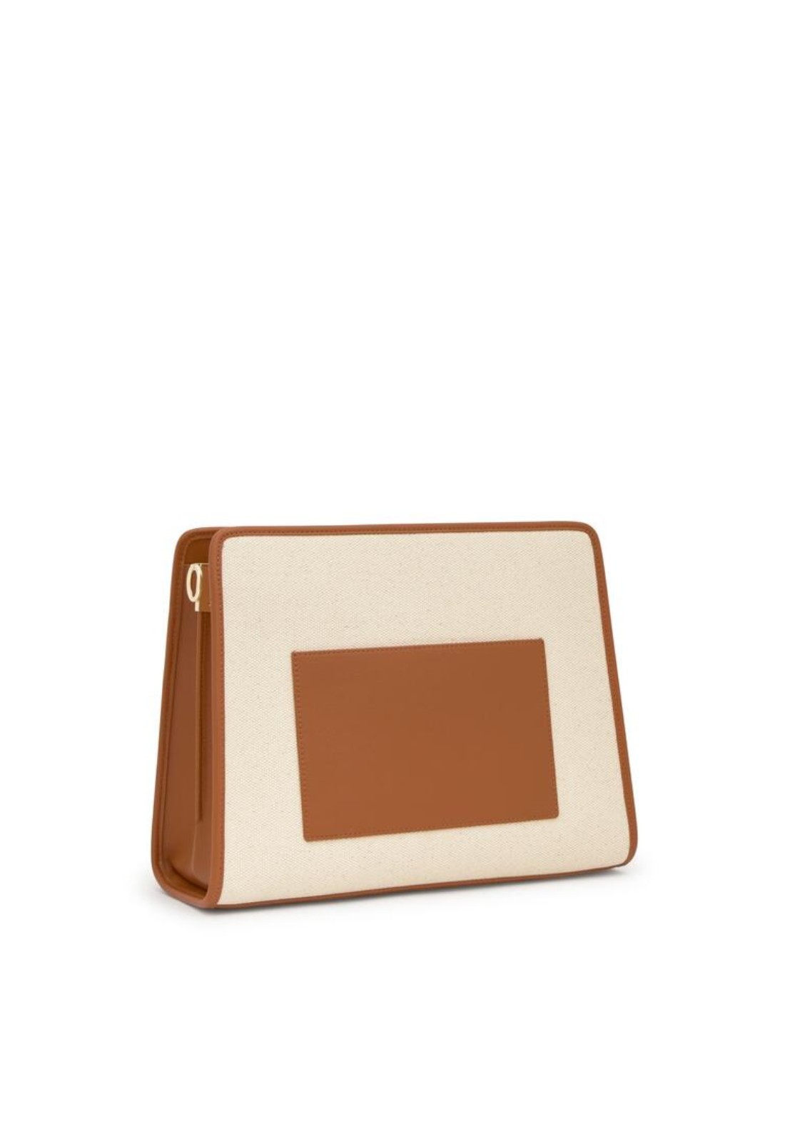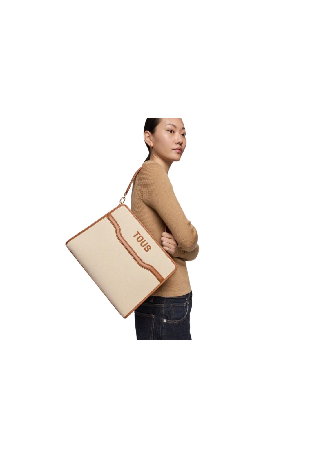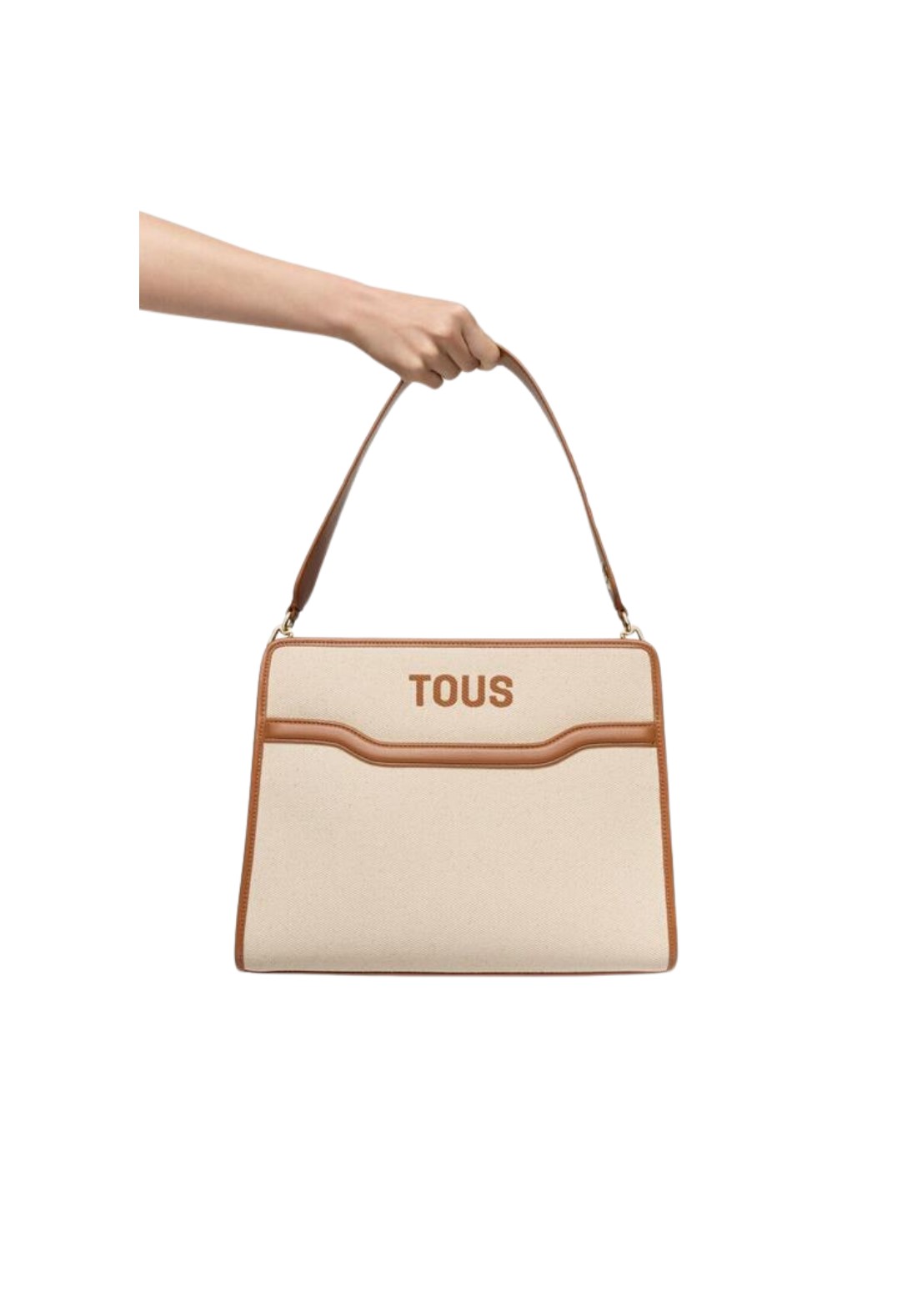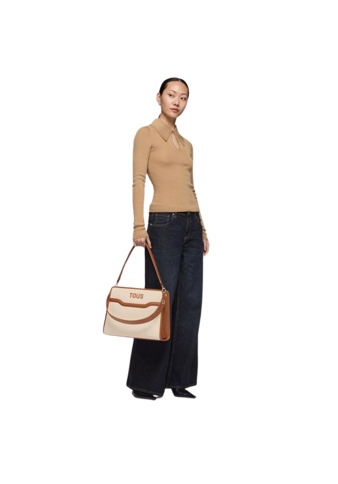 Bolsa shopper mediano Audree Canvas de algodón con detalles de poliuretano y piel vacuna con certificación LWG. Tiene el cierre magnético y dos compartimentos separados por uno con cremallera. Bolsillo interior y bolsillo exterior abiertos. Asa de hombro extraíble.