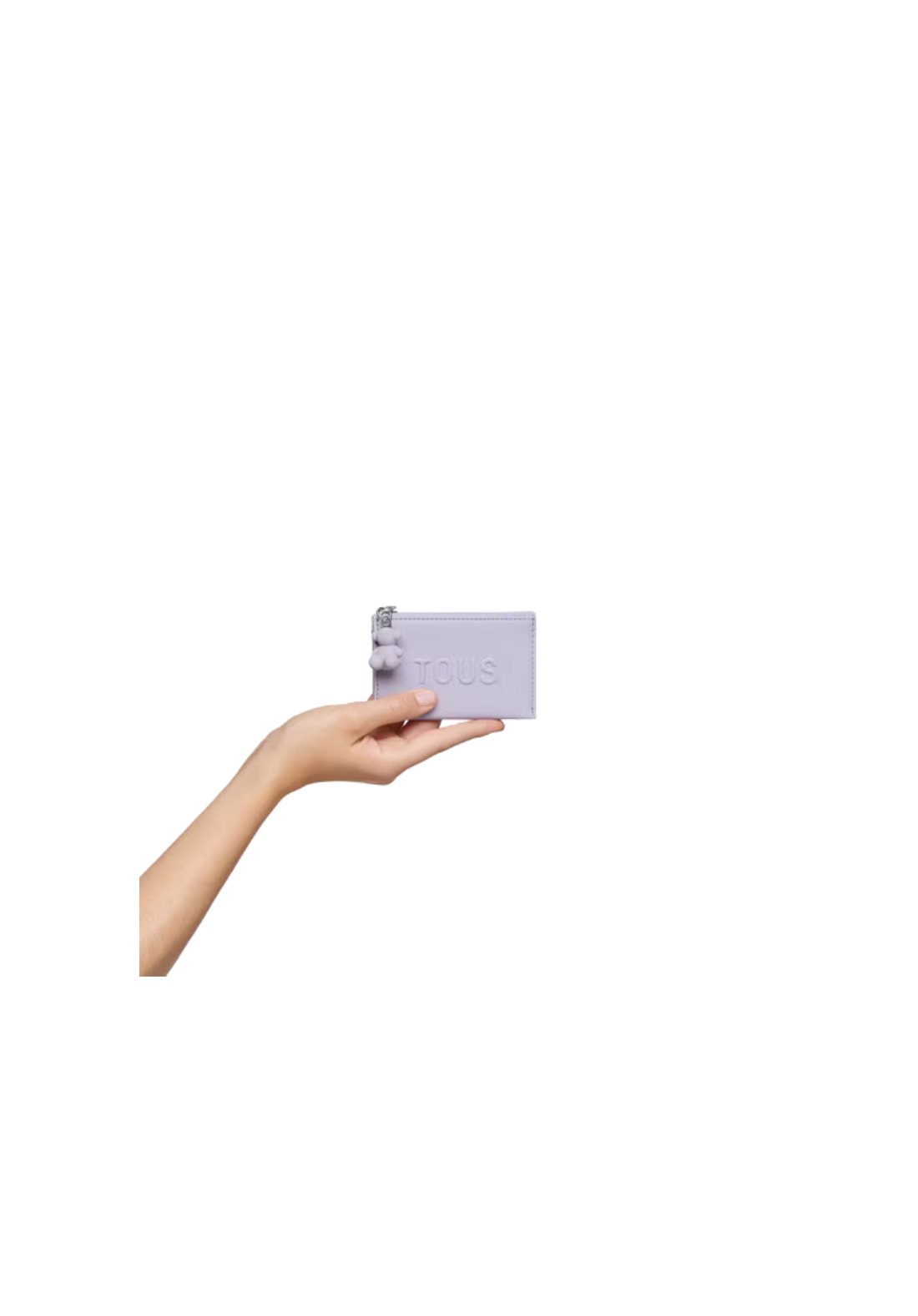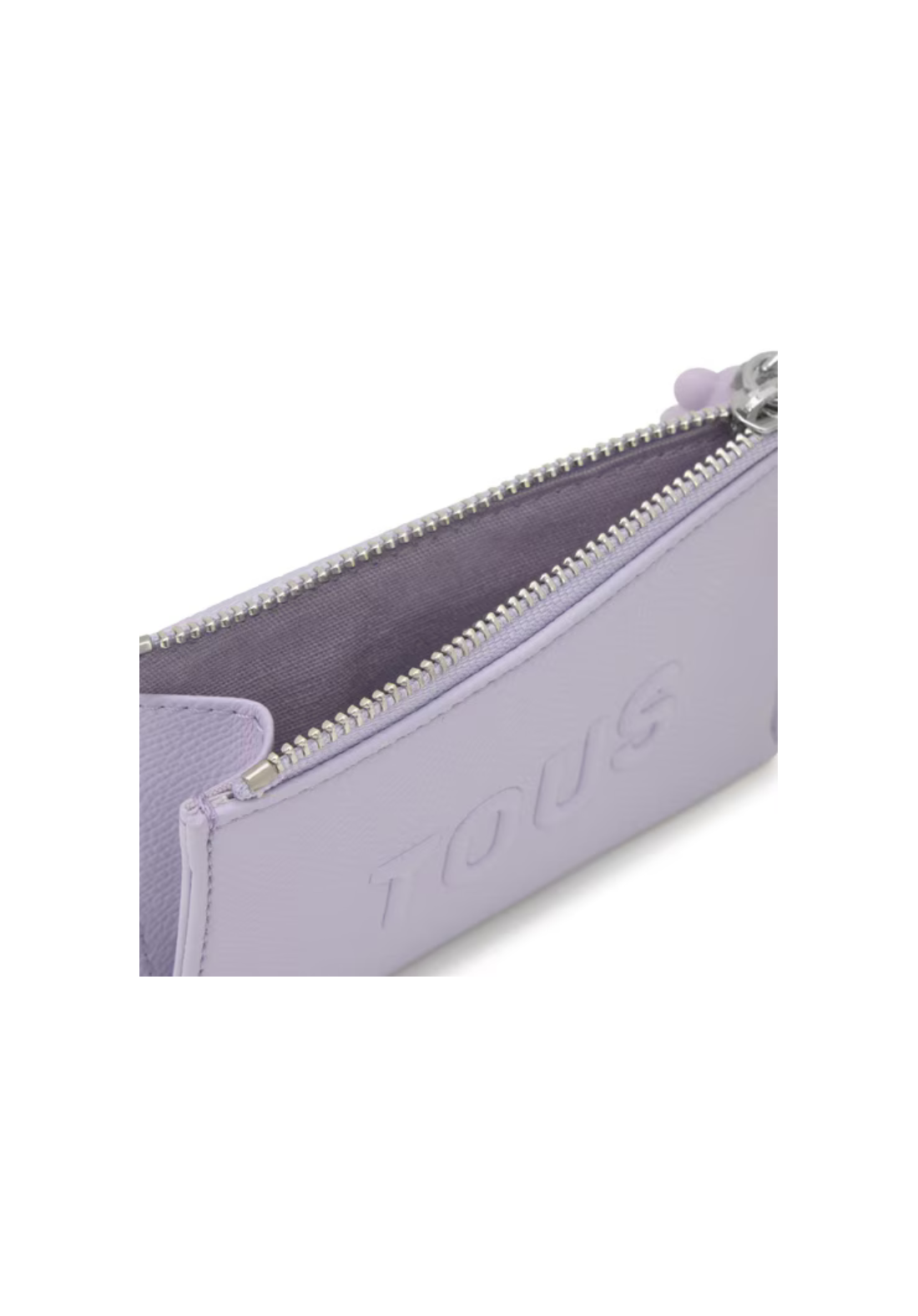 Monedero tarjetero TOUS Brenda de poliuretano con compartimento especial para monedas con cierre de cremallera. En la parte trasera cuanta con tres ranuras para tarjetas, una de ellas transparente.