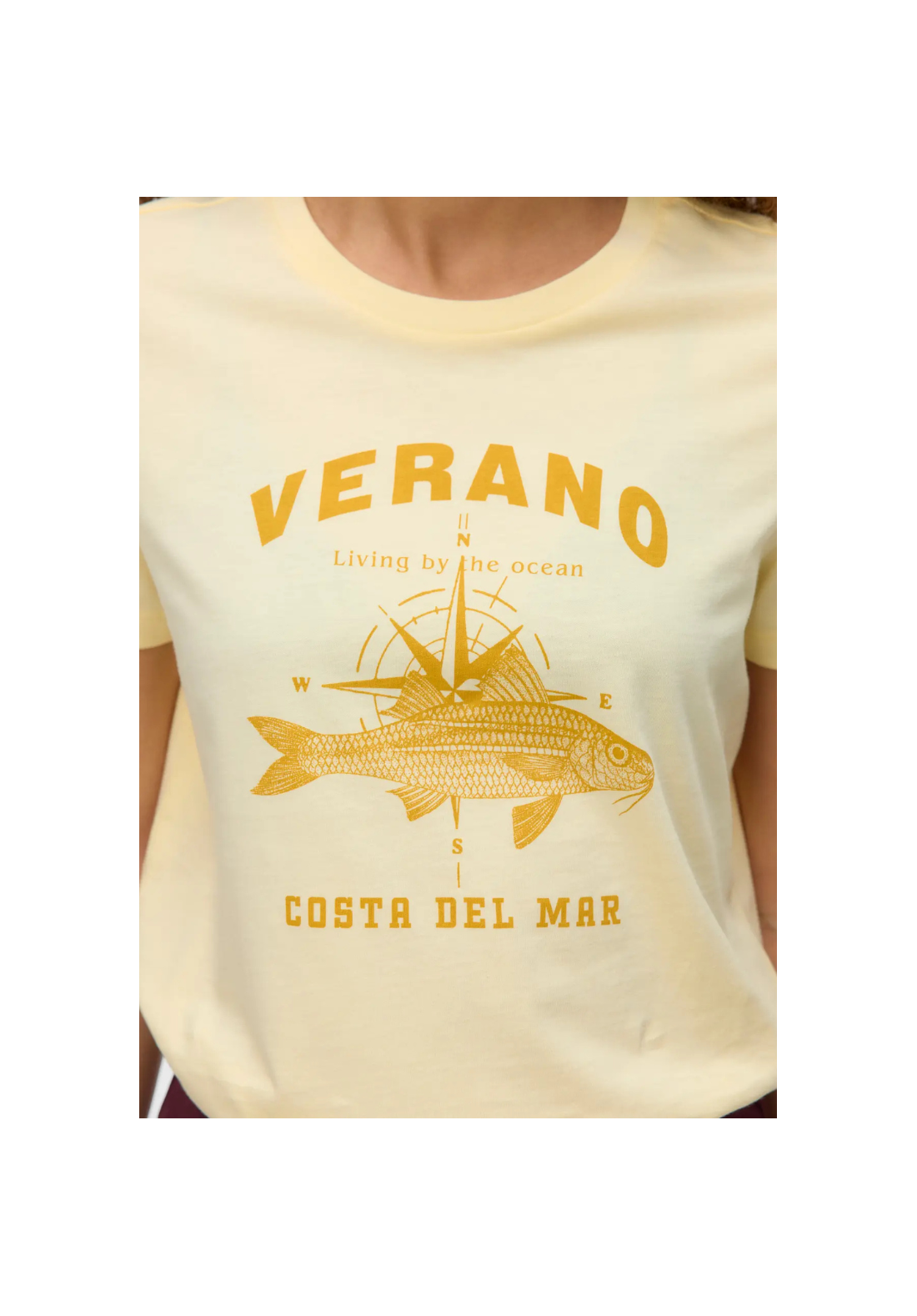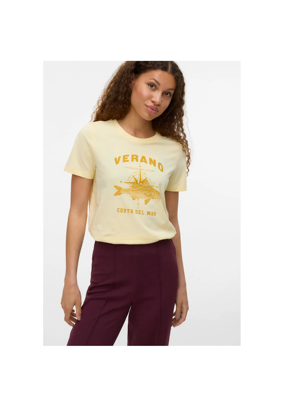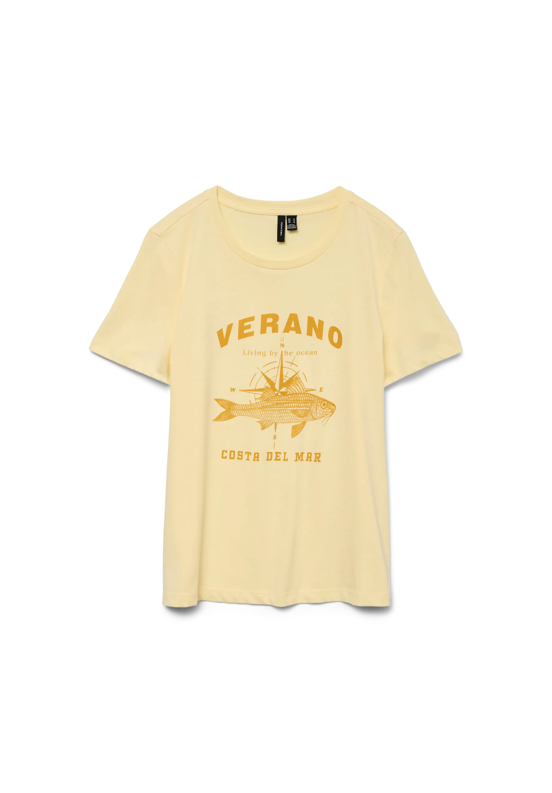 Camiseta de manga corta y cuello redondo con dibujo en la parte delantera.