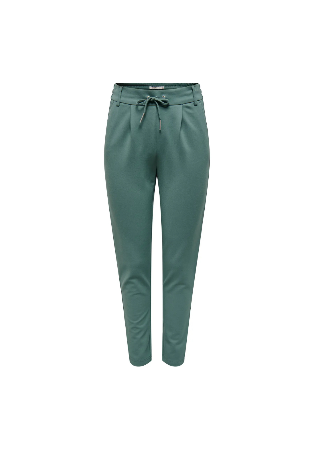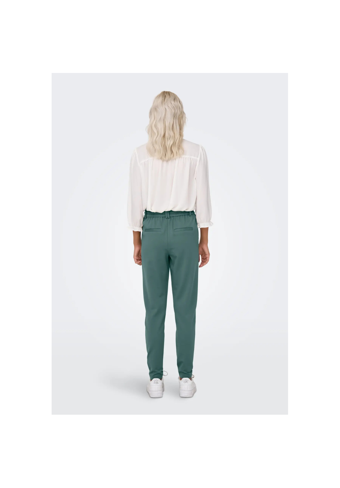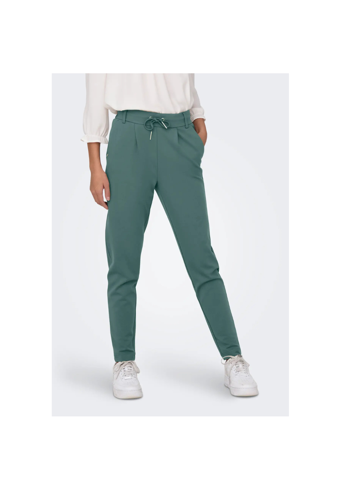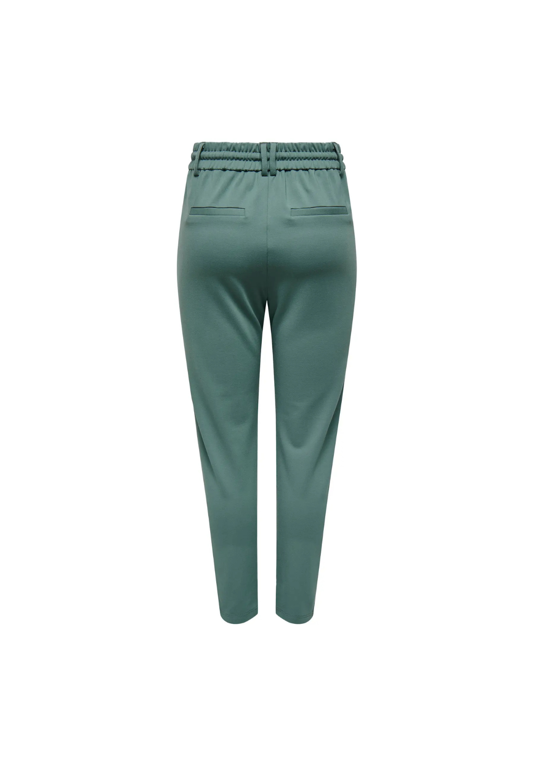 Pantalón con cierre de cordón en la cintura. Tiene bolsillos traseros no funcionales. Además trae trabillas para cinturón y detalle plisado.