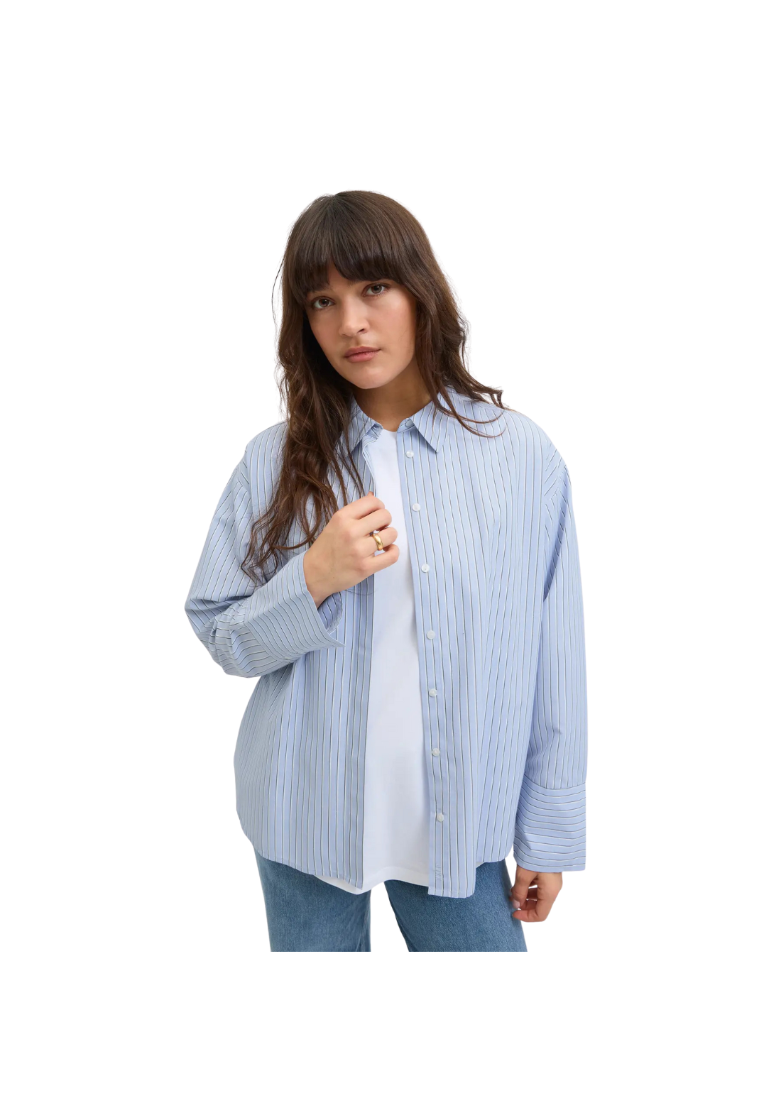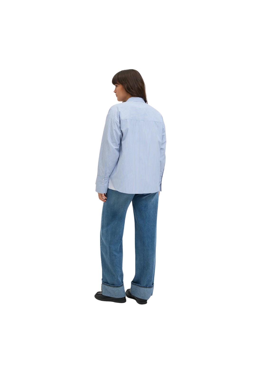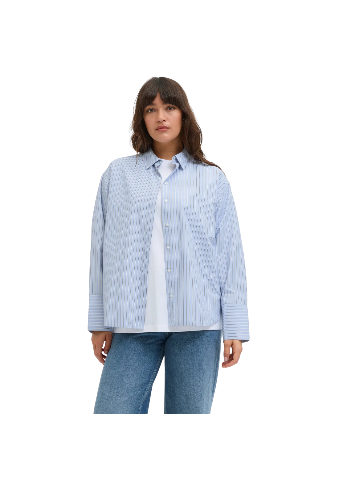 Camisa de popelina, de manga larga y cuello camisero. Cierre con botones.