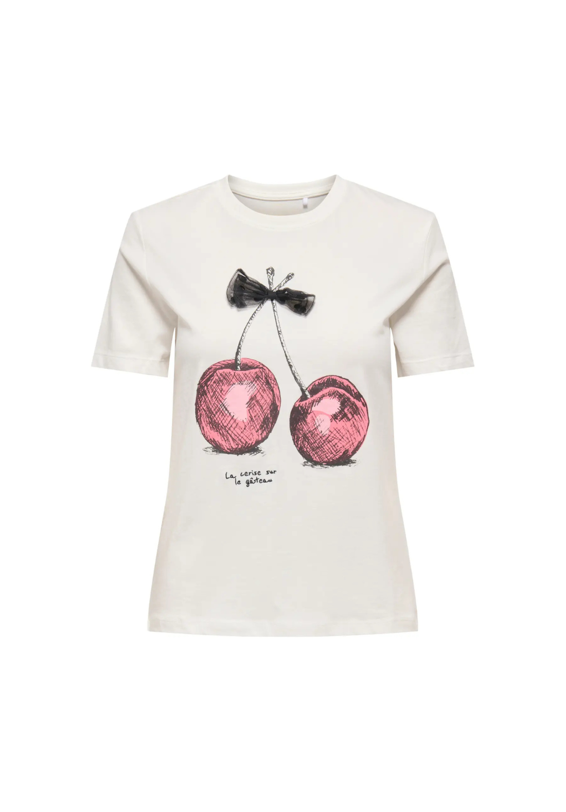 Camiseta de manga corta y cuello redondo con detalle de lazo bordado en el pecho.