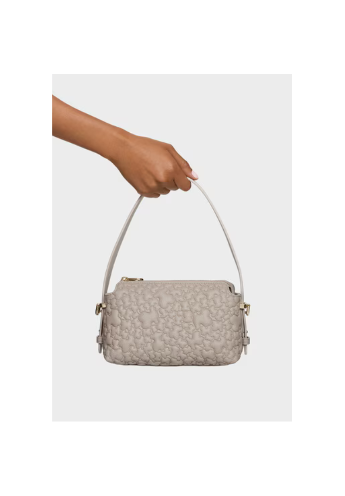 Bolsa mini TOUS Puffy Bear de poliuretano con cierre de cremallera. Tiene asa de hombro ajustable y asa bandolera extraíble.