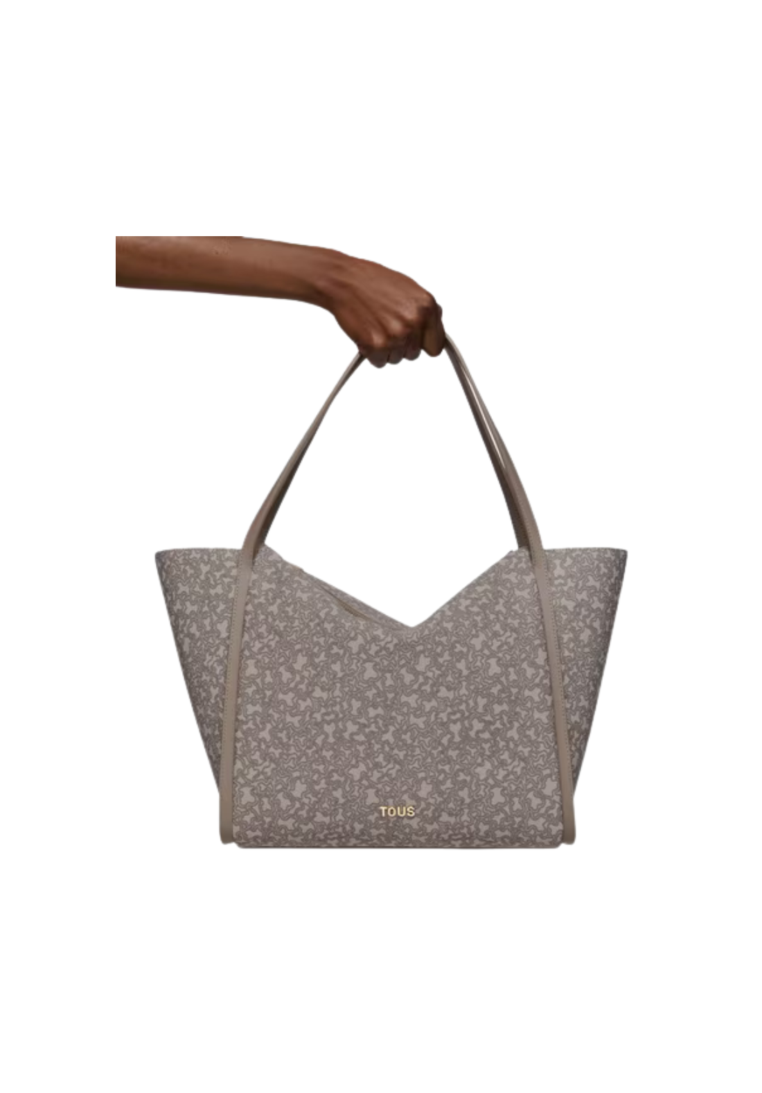 Bolso capazo grande Kaos Mini Lines de lona con detalles de poliuretano con cierre de cremallera. Tiene bolsillo interior con cremallera y asa fija de hombro.