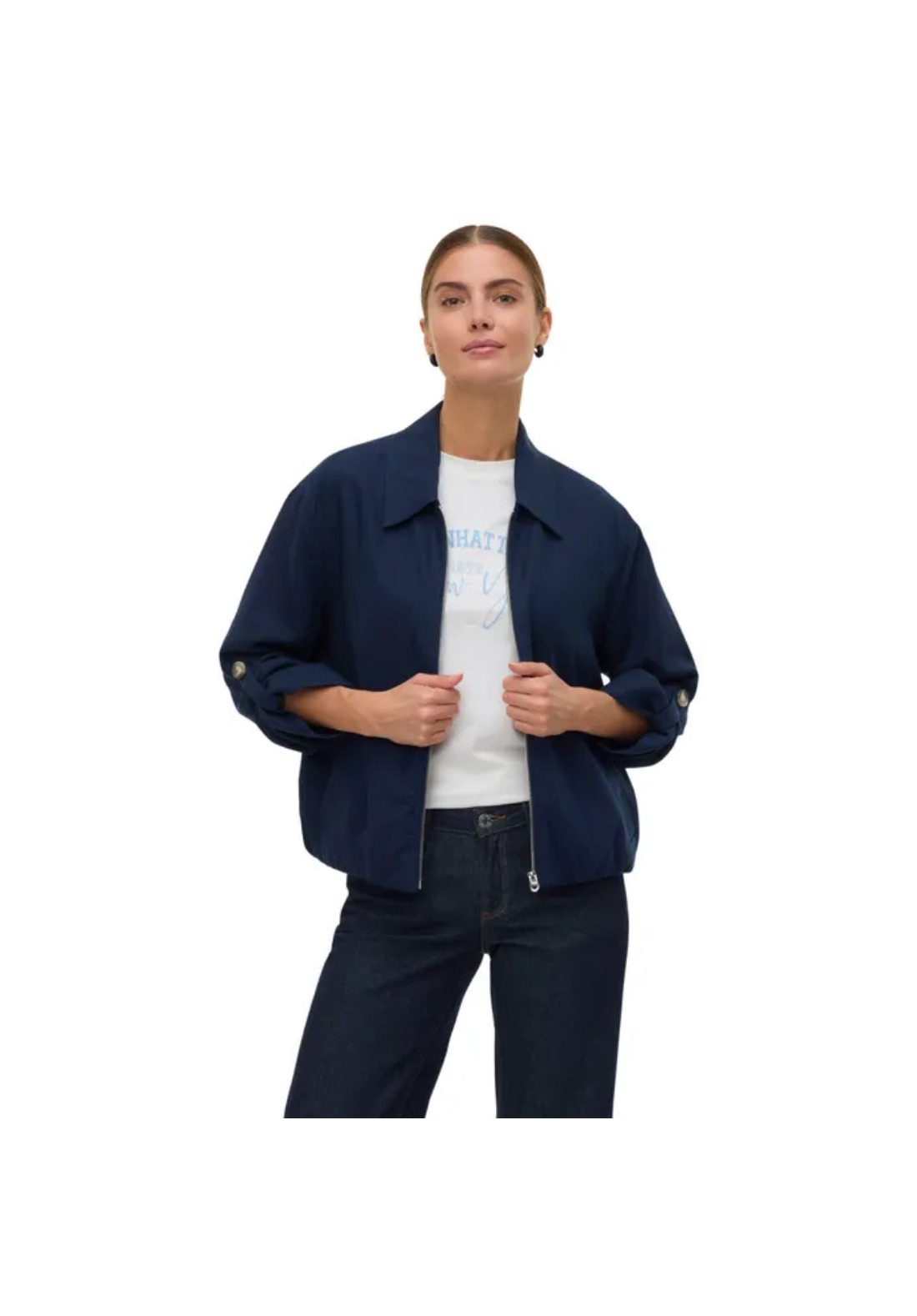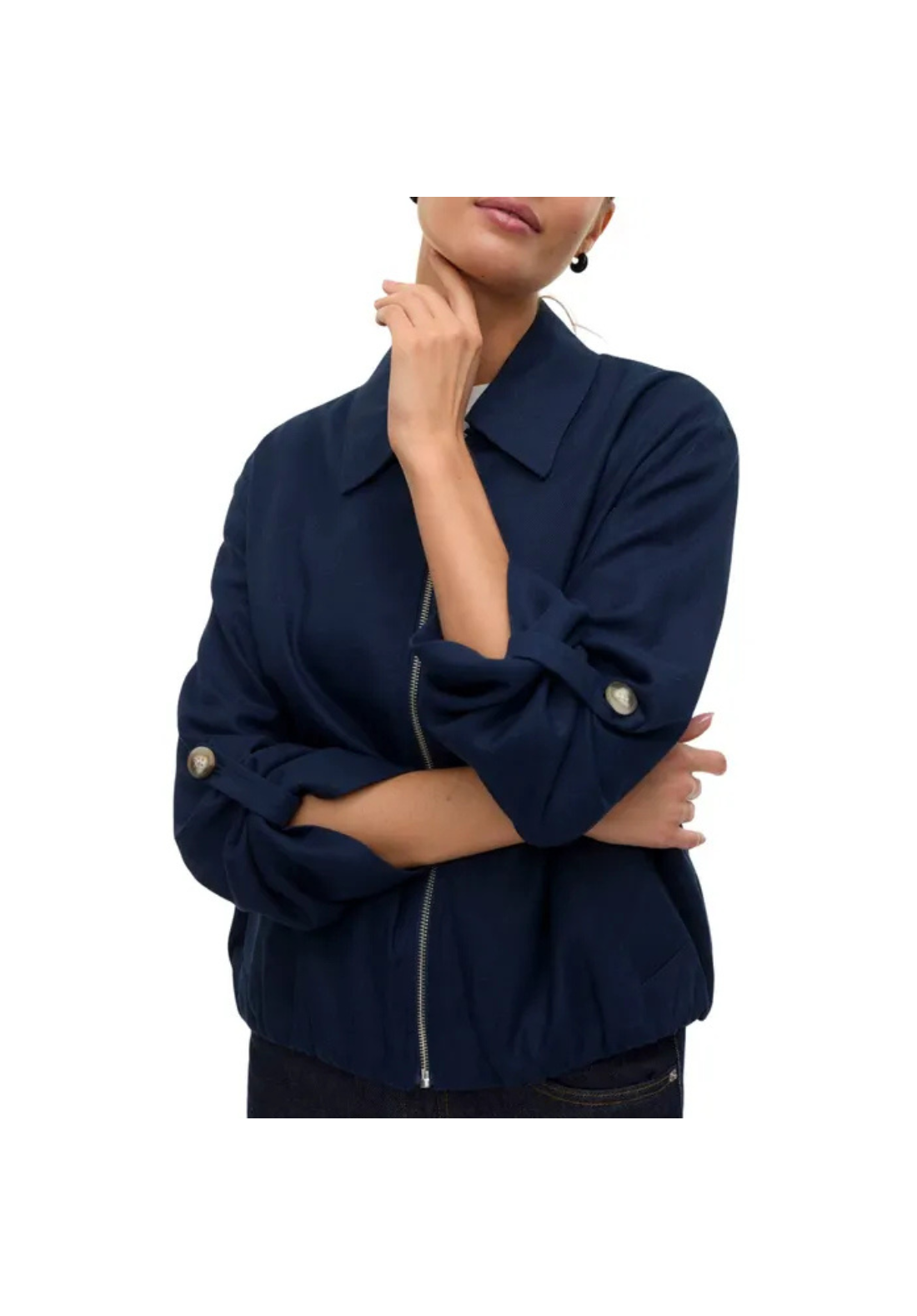 Cazadora con cierre de cremallera. Tiene dos bolsillos de ojal.