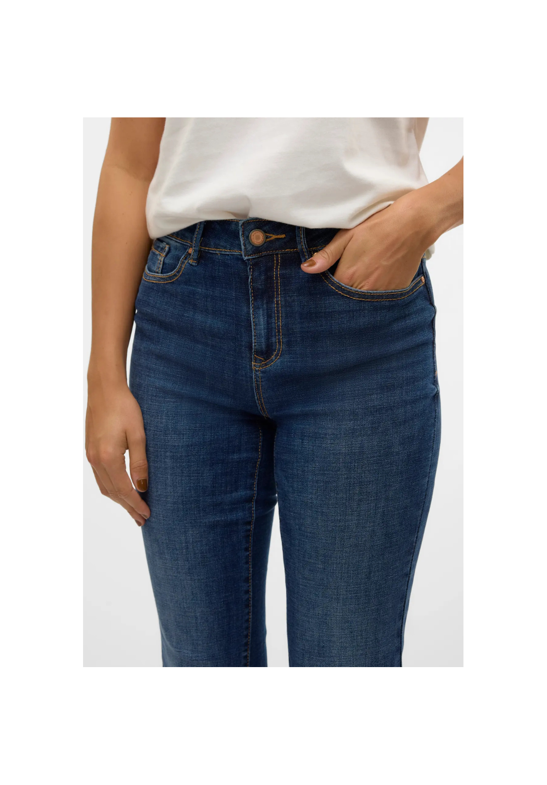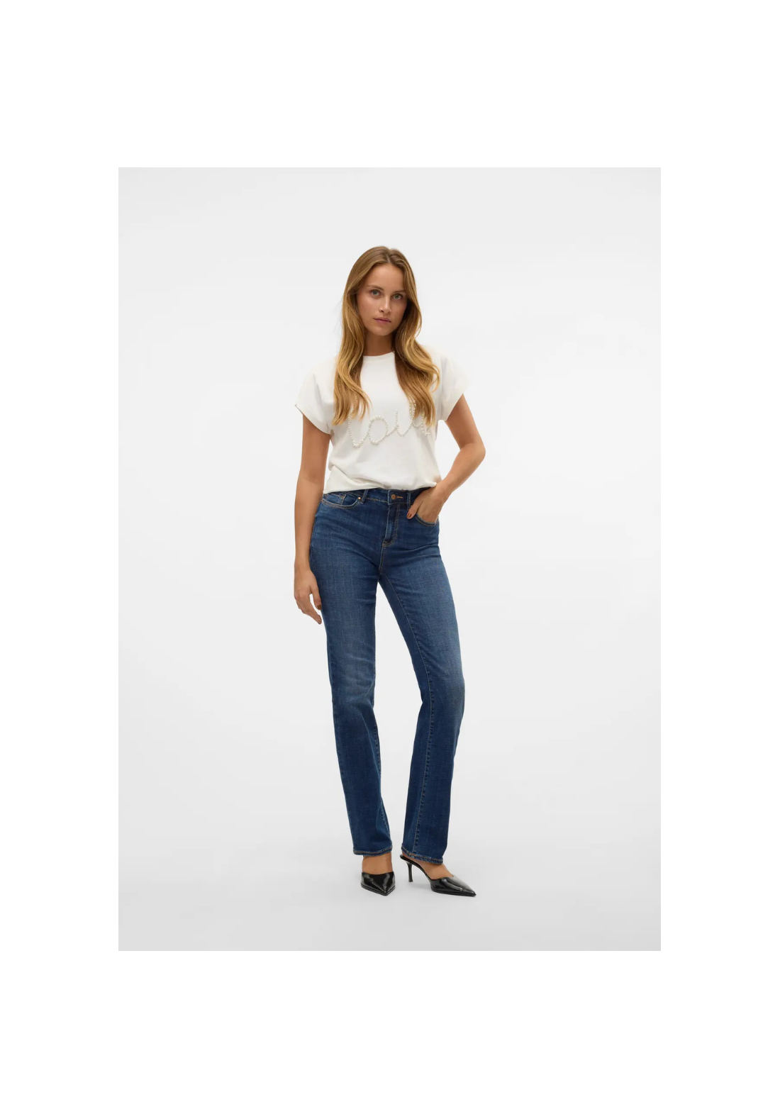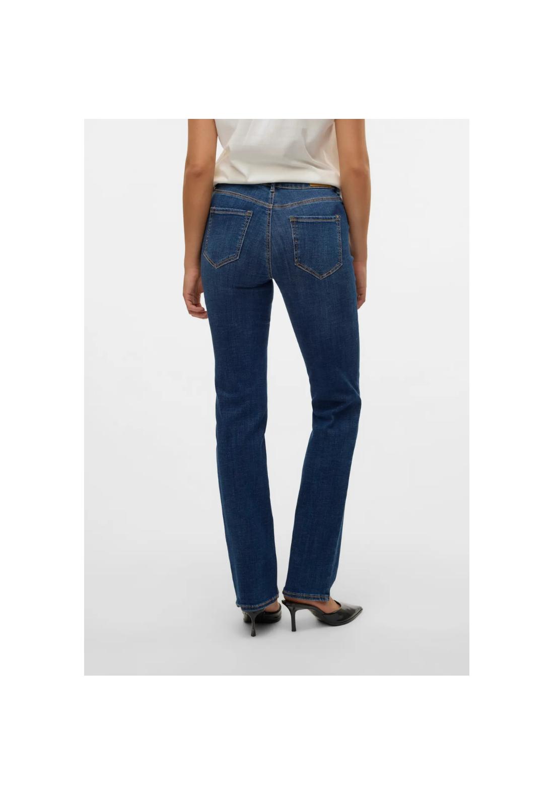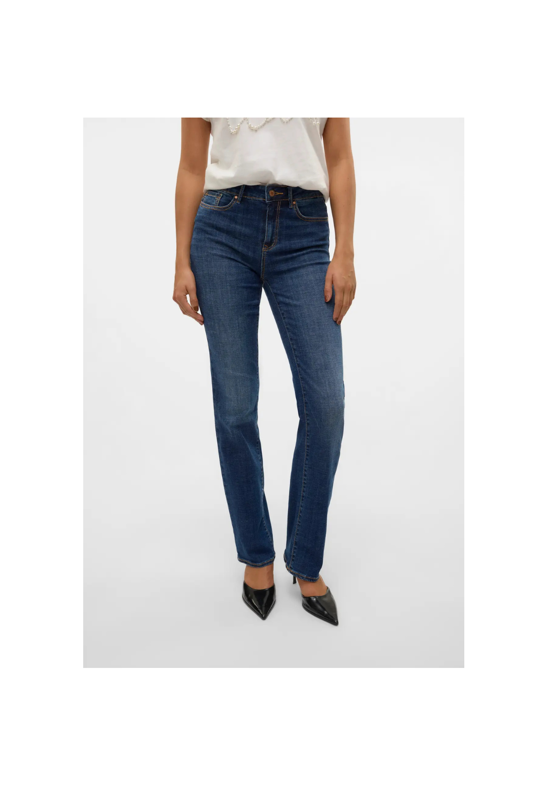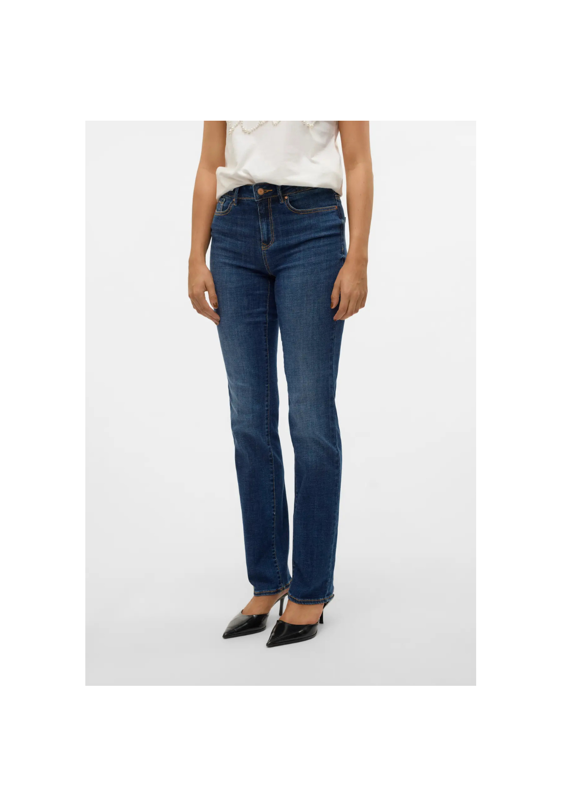 Vaqueros rectos con cierre de botón y cremallera, con 5 bolsillos y de tiro medio.