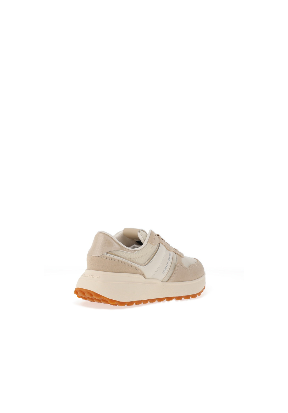 Zapatillas de ante y punta redonda, diseñadas con una combinación de paneles texturizados y una llamativa suela con tacos. Incluyen una plantilla acolchada extraíble para mayor comodidad y lucen el logo "Tommy Jeans" grabado en la lengüeta y cierre de cordones.