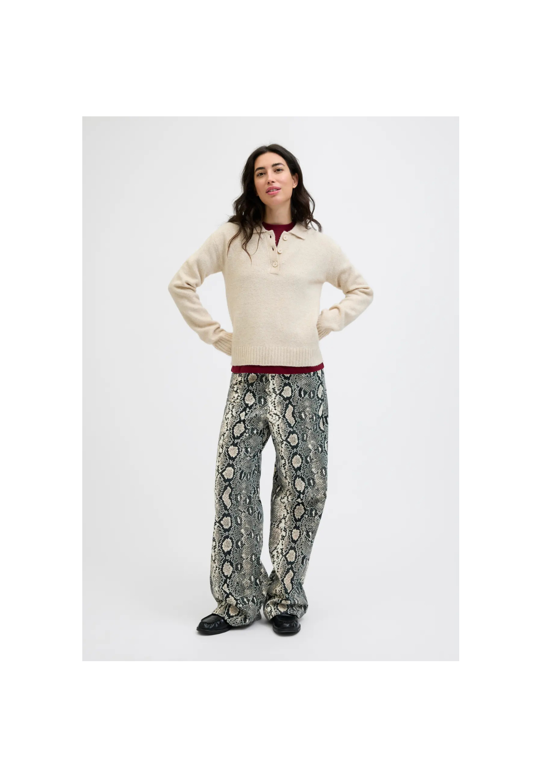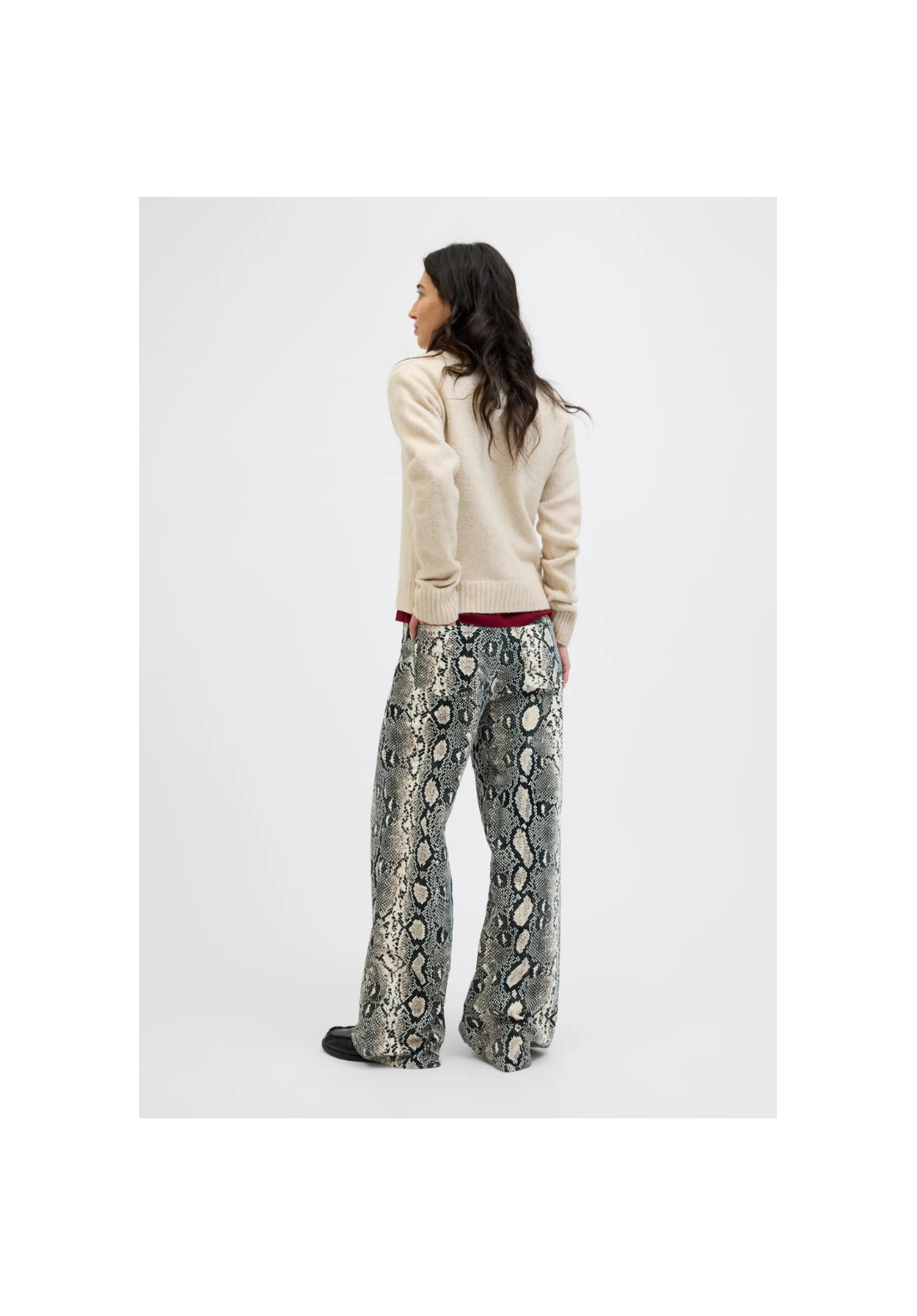 Pantalón de pana ,con cierre de cremallera y botón, bolsillos traseros y delanteros. Es de cintura alta y pierna ancha.